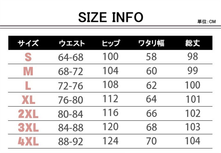 サイズ S|M|L|XL|2XL|3XL|4XL