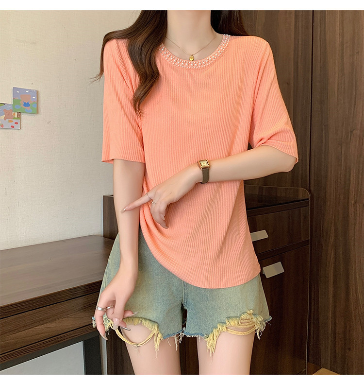 商品名 ニットtシャツ レディース 半袖 サマーニット 無地 夏 デザイン 半袖tシャツ 夏服 薄手 トップス クルーネック カットソー きれいめ 通気性 カジュアル おしゃれ 通勤 オフィス 夏物 柔らかい 通学 普段着 tシャツ シンプル ゆったり 可愛い ファッション