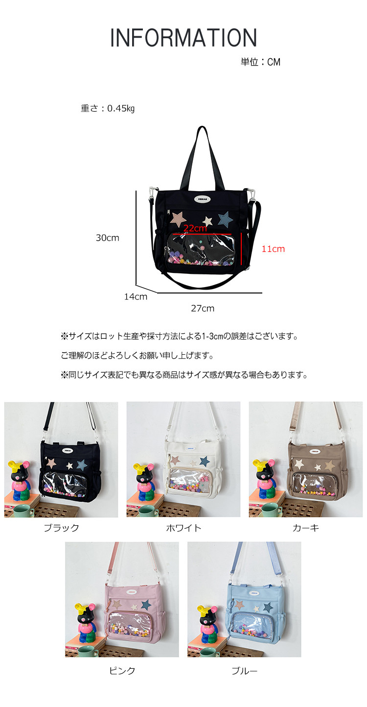 商品名 痛バッグ レディース ショルダーバッグ 大容量 缶バッチ クリアバッグ 痛バック 痛バ カジュアル おしゃれ