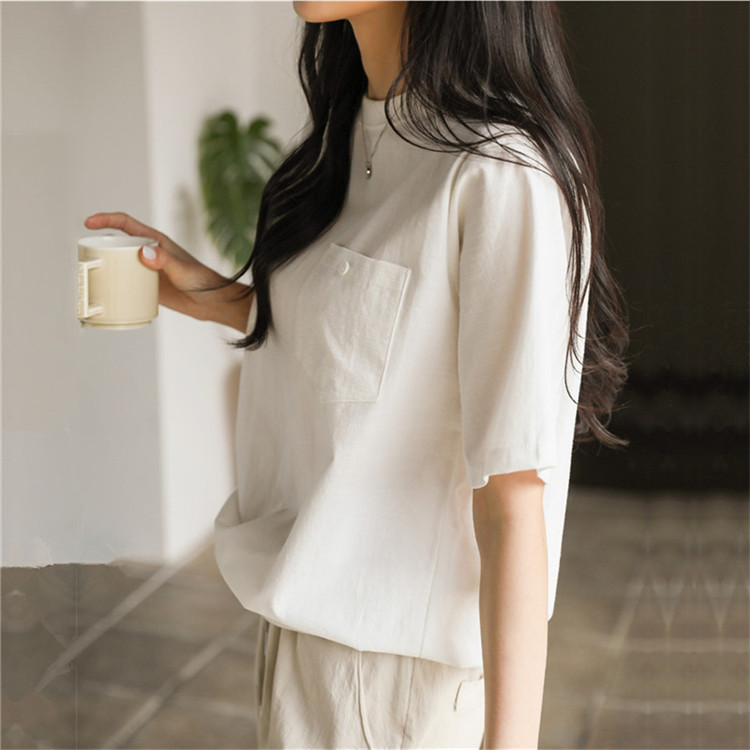 商品名 綿麻tシャツ リネンtシャツ レディース 半袖tシャツ 夏 無地 半袖 カジュアル ゆったり トップス 普段着 部屋着 夏服 クルーネック シンプル おしゃれ ルームウェア Tシャツ 夏物 綿麻 リネン 胸ポケット 通勤通学 きれいめ カジュアル服 オトナ tシャツ