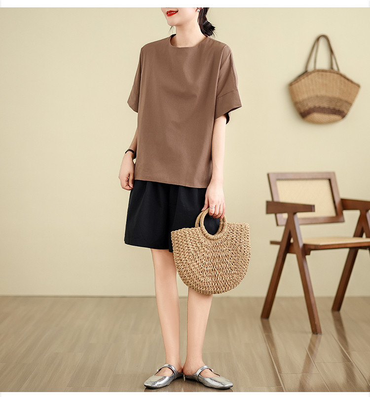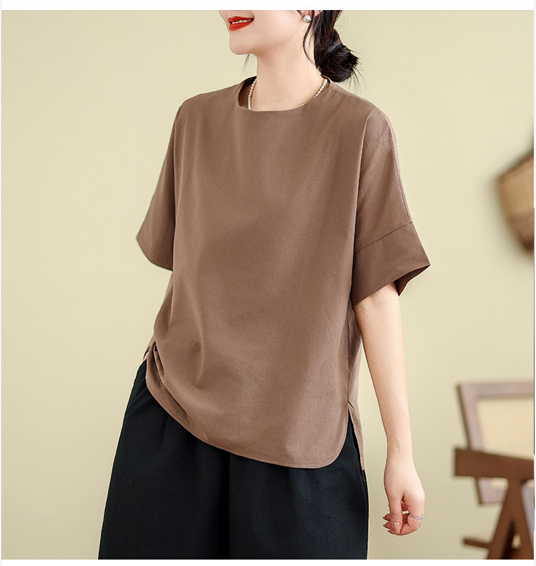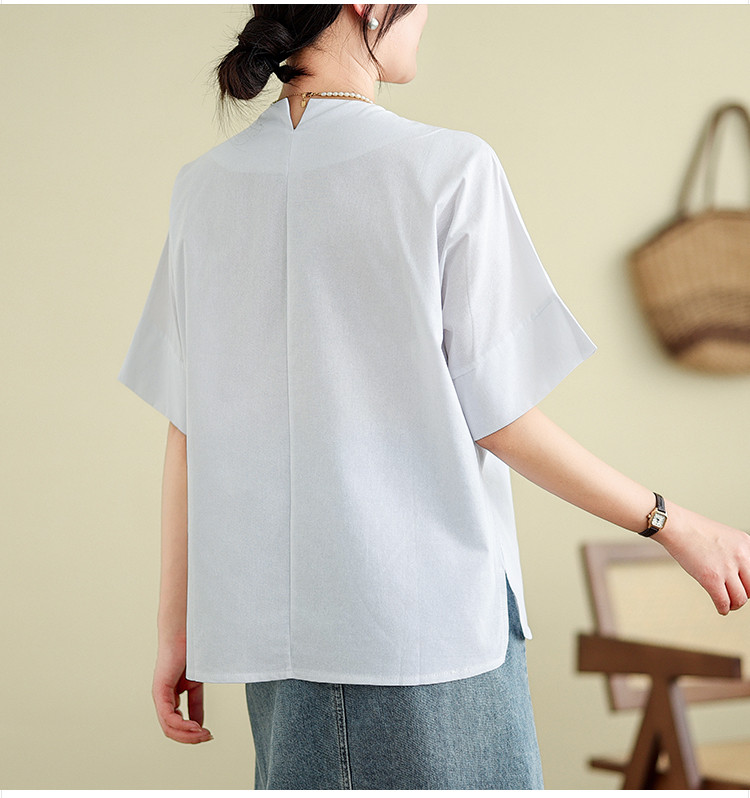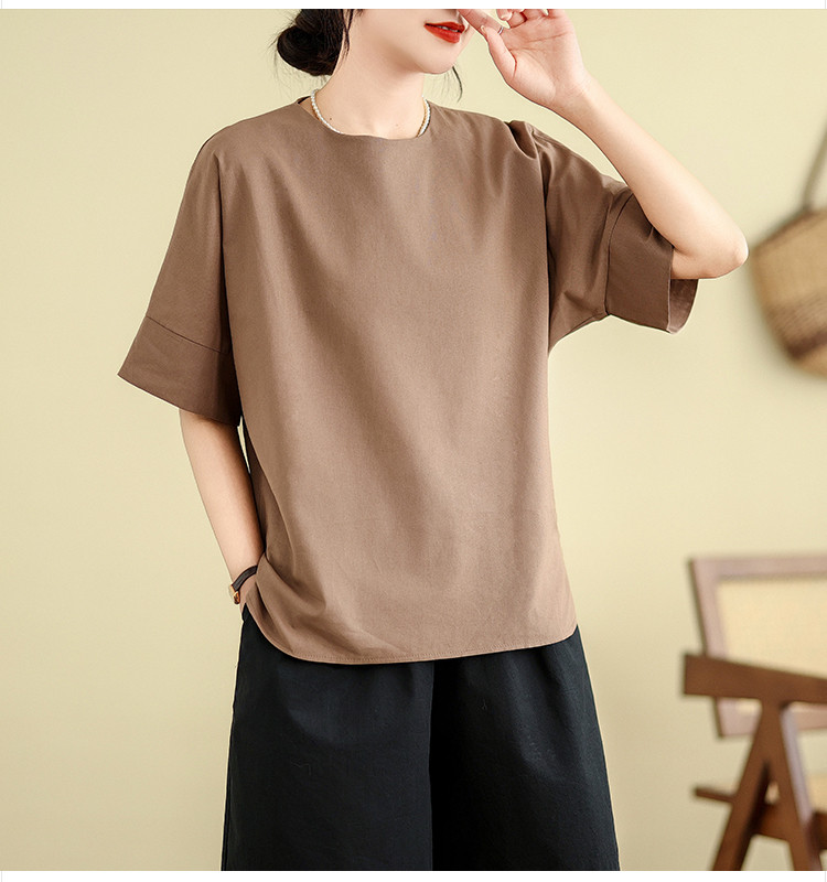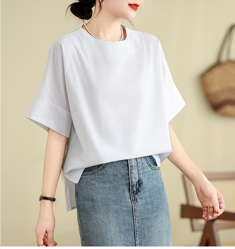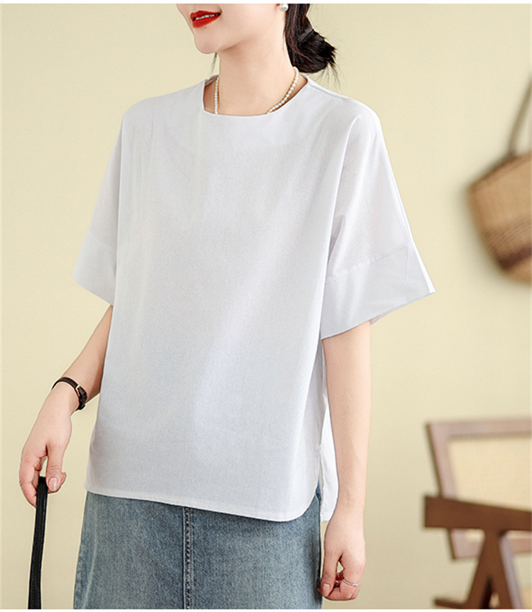 商品名 シャツ 五半袖 ブラウス レディース 無地 トップス クルーネック 夏 ゆったり カジュアル 通勤 OL 通学 おしゃれ 夏服 エレガント 五半袖シャツ シャツブラウス サイドスリット 20代 30代 40代 50代 夏物 普段着 薄手 韓国風 日系 部屋着 ルームウェア ファッション