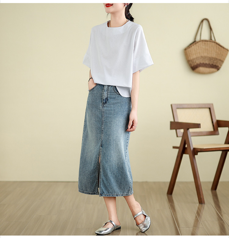 tシャツ 五半袖 レディース サイドスリット 夏 部屋着 カジュアル トップス ブラウス 20代 30代 40代 50代
