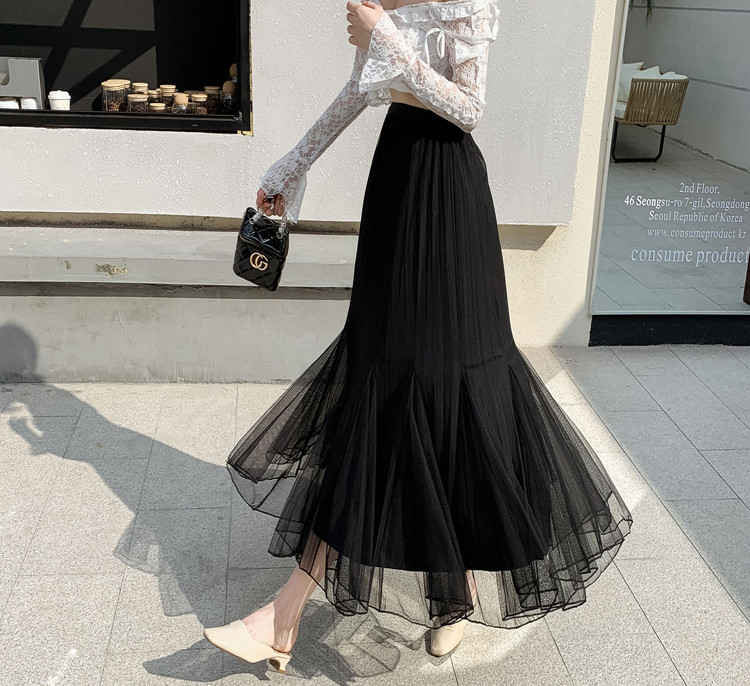 商品名 スカート マーメイド プリーツスカート チュール 春 夏 秋 ロングスカート レディース ミディアム丈スカート 夏物 Aライン フレアスカート ボトムス チュールスカート ウエストゴム きれいめ おしゃれ 無地 ひざ下 フレア カジュアル 可愛い マキシ上 ミディアム丈
