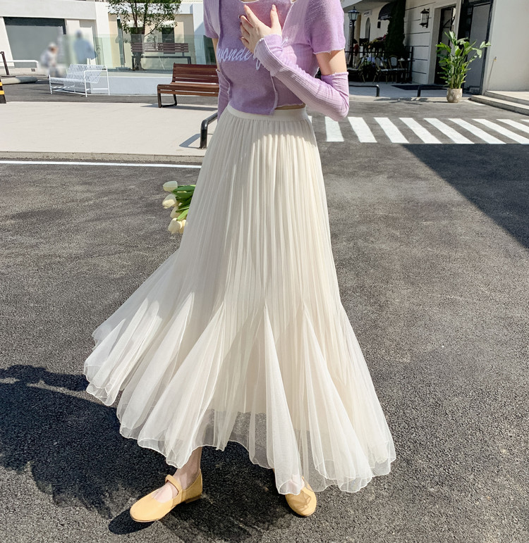 プリーツスカート チュール マーメイドスカート ミディアム丈 Aライン フレア 春夏 ひざ下レディースファッション ボトムス スカート