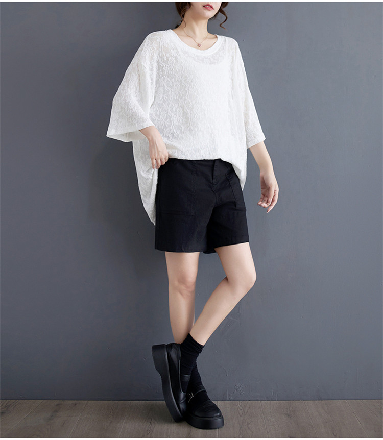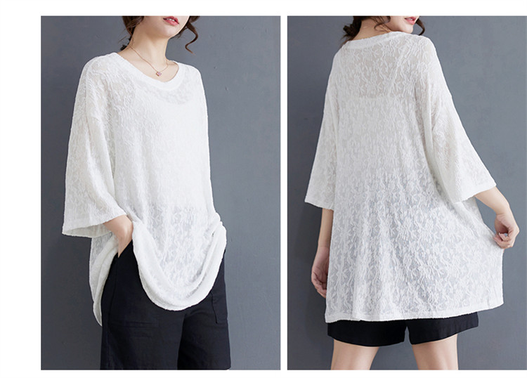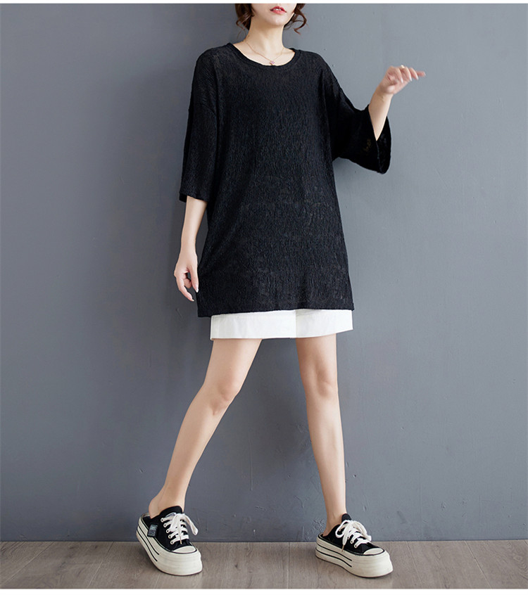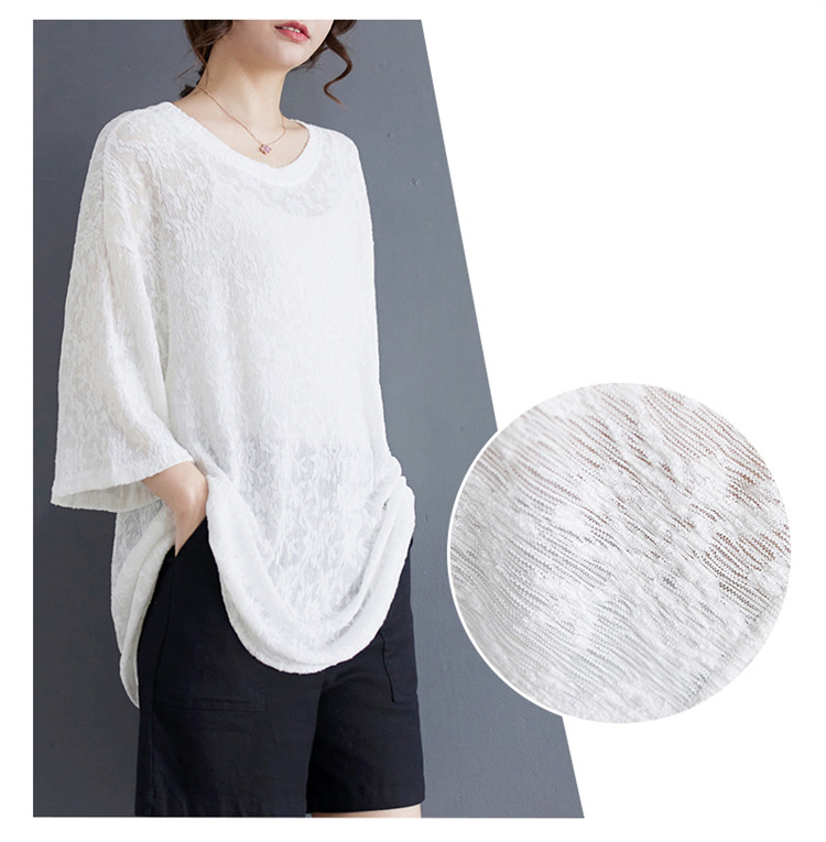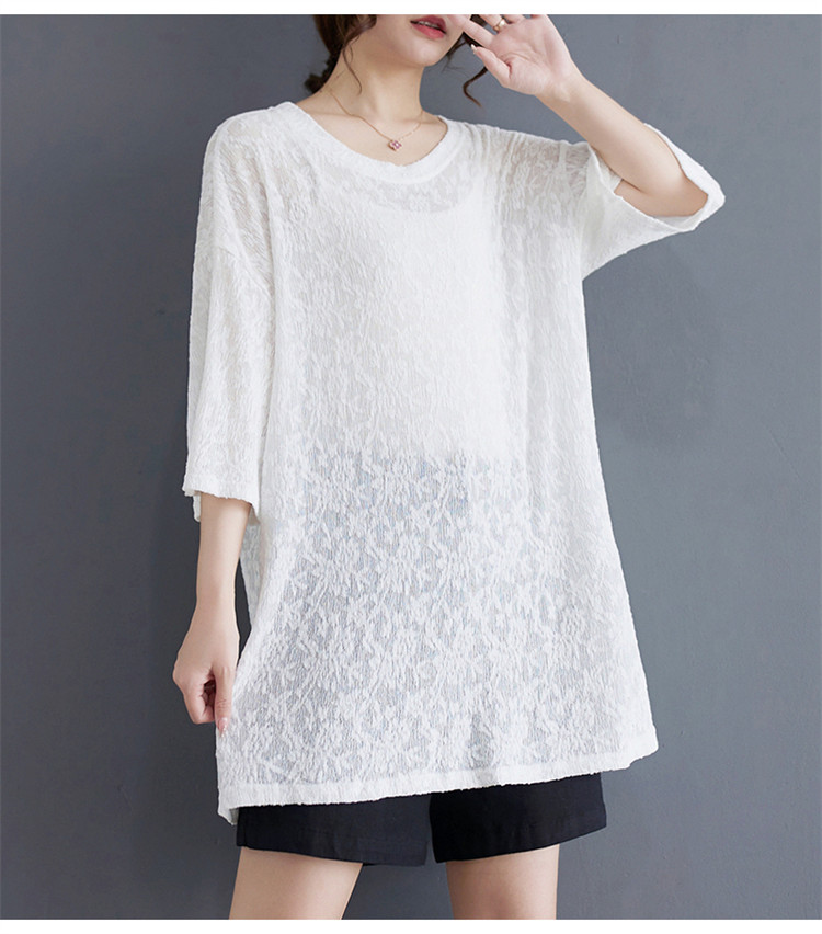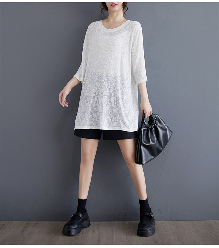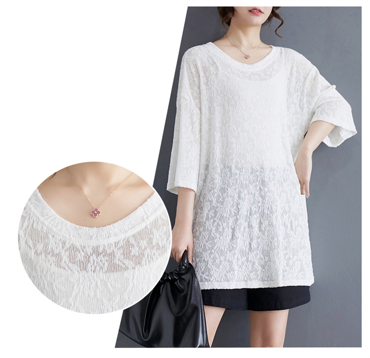 商品名 シフォンtシャツ 半袖 レディース 五分袖丈 半袖Tシャツ 夏 レース ロング丈 ゆったり シフォン 夏服 クルーネック 半透明 おしゃれ レジャー カジュアル 五分袖tシャツ ルームウェア 部屋着 夏物 通気性 ビッグシルエット コーデ tシャツ ファッション 通勤通学