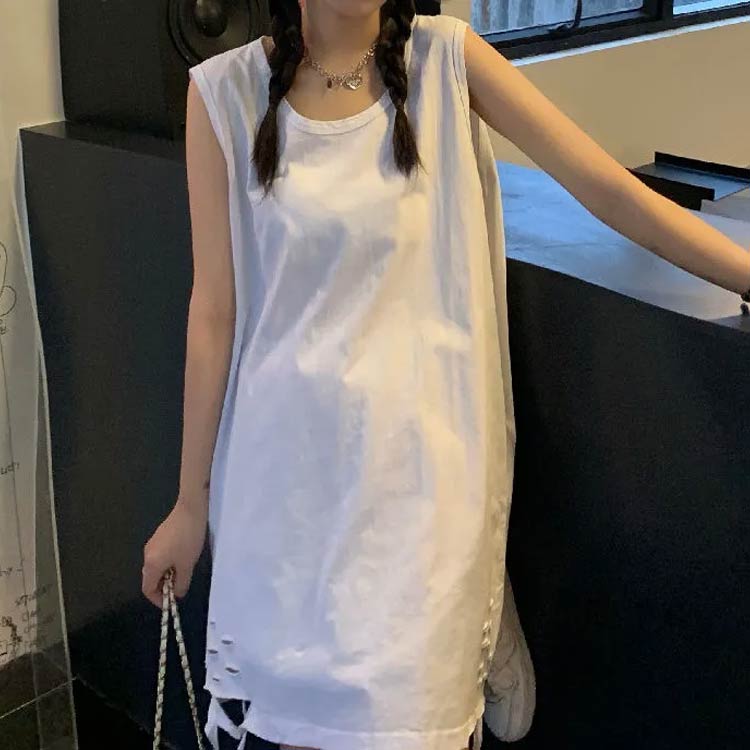 ノースリーブ ロング おしゃれ 裾ダメ