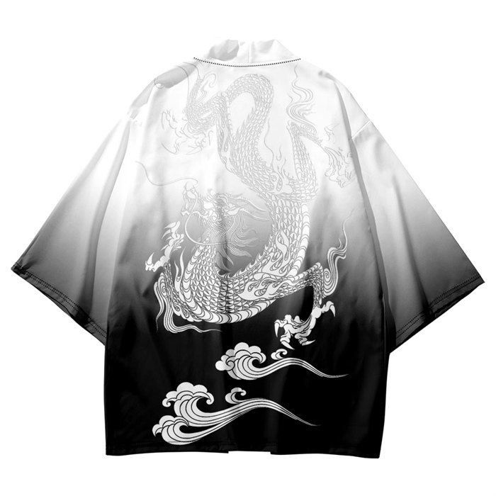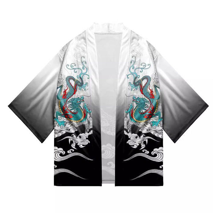 レッド ホワイト男女兼用 龍柄 夏祭り 夏恋 寺 法被 羽織り 半纏 はんてん 法被 ハッピ 長半纏 半天 袢天 半被 お祭り衣装 雅 和柄 羽織 和装 ユニセックス 浴衣 着物 はっぴスタイル かっ