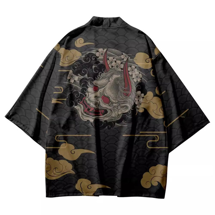 ブラック男女兼用 夏祭り 夏恋 寺 法被 羽織り 半纏 はんてん 法被 ハッピ 長半纏 半天 袢天 半被 お祭り衣装 雅 和柄 羽織 和装 ユニセックス 浴衣 着物 はっぴスタイル かっこいい かわい