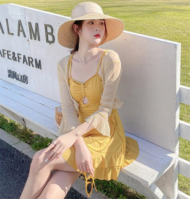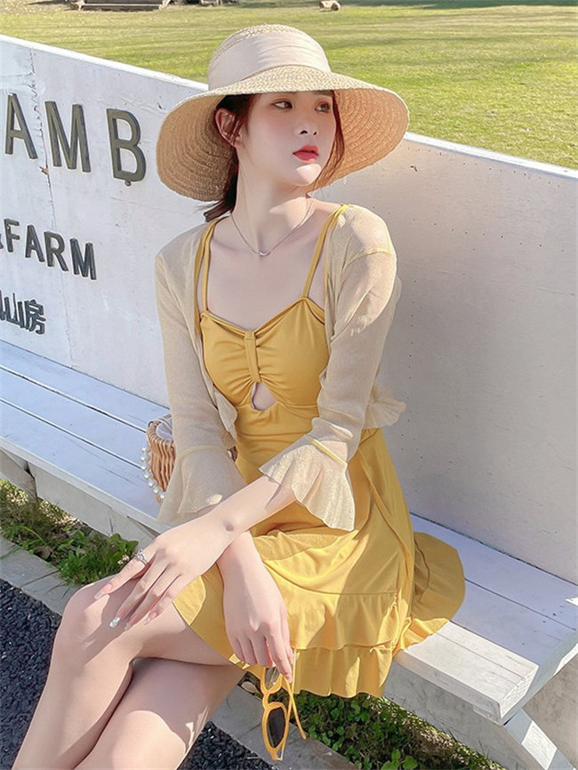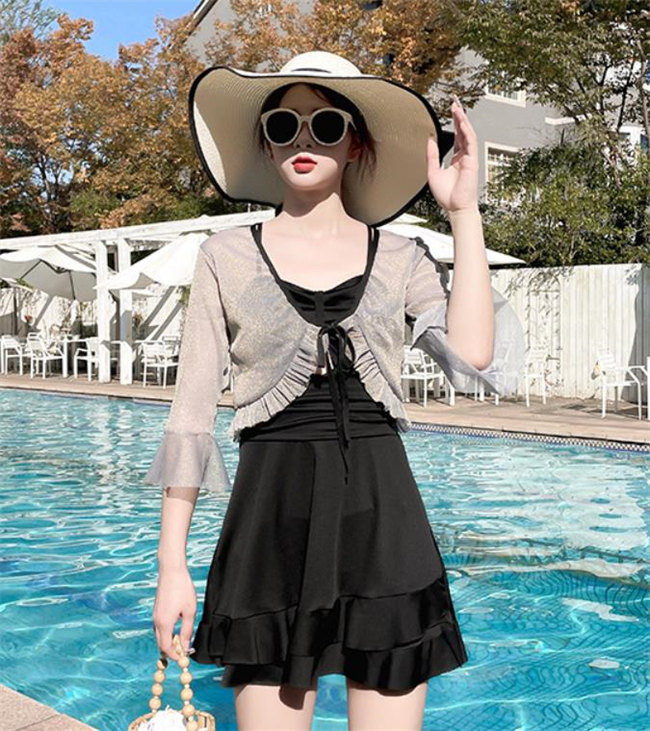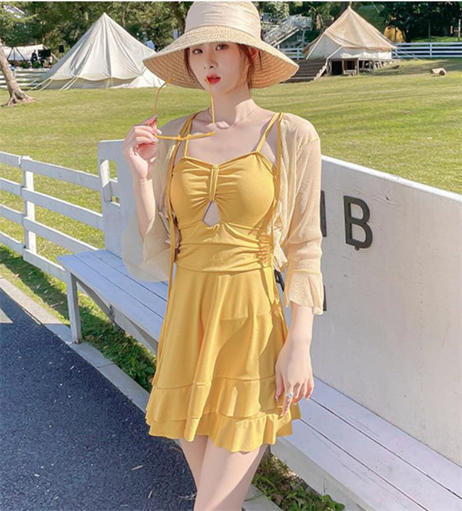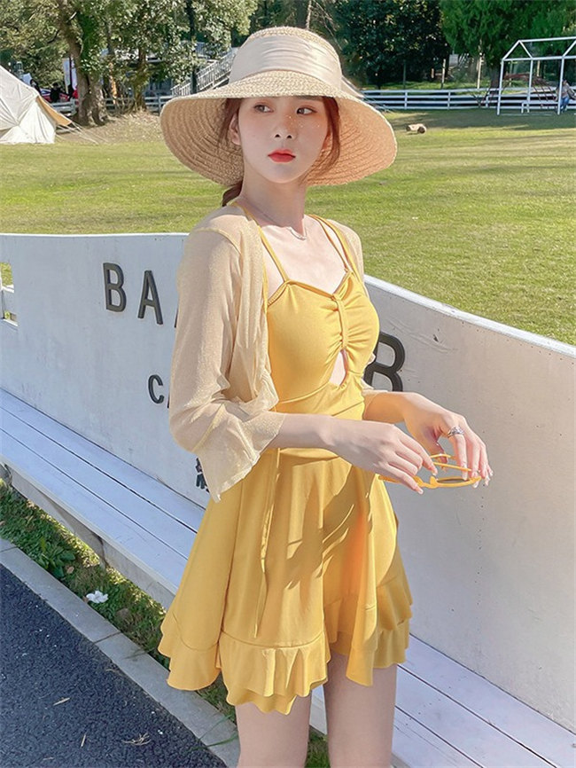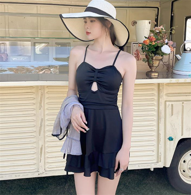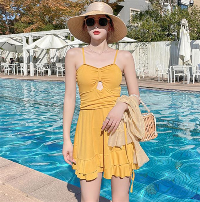 黒 イエローパッド付き 水着 体型カバ