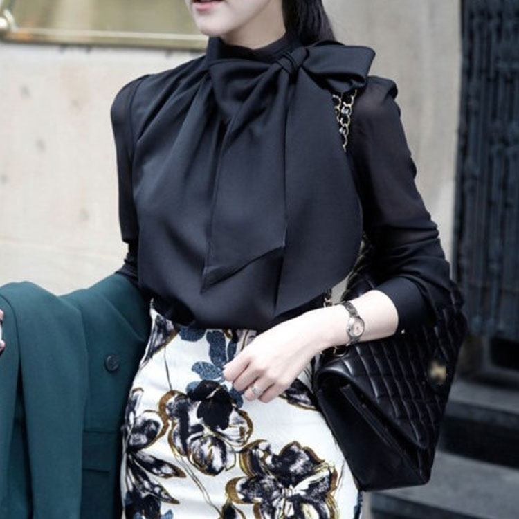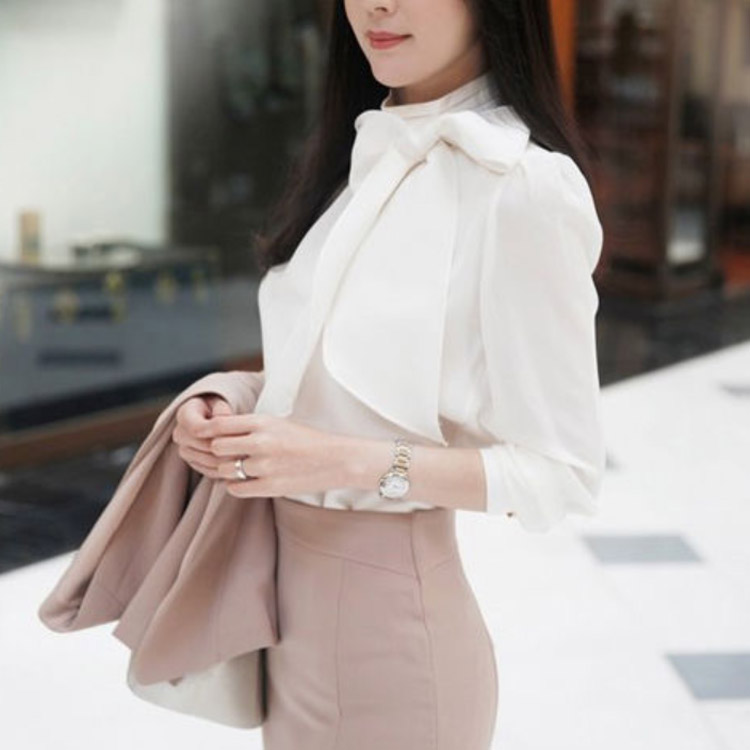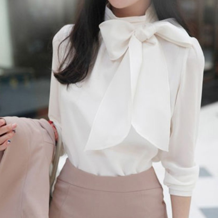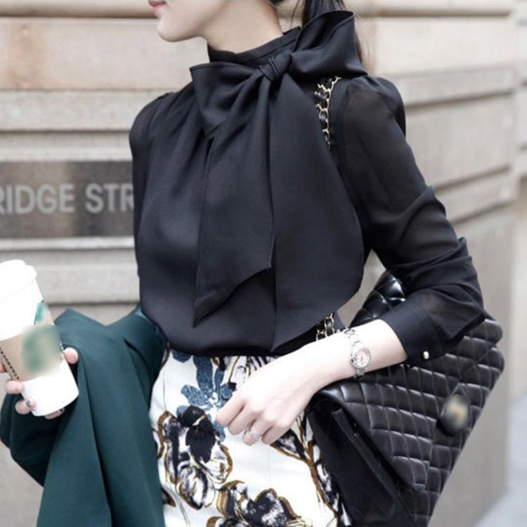 長袖ブラウス ボウタイ リボンブラウス