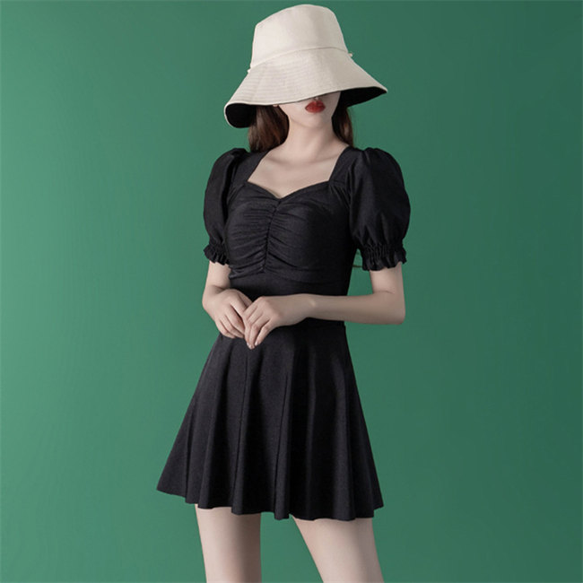 ブラック黒ワンピース水着 半袖 体型カ