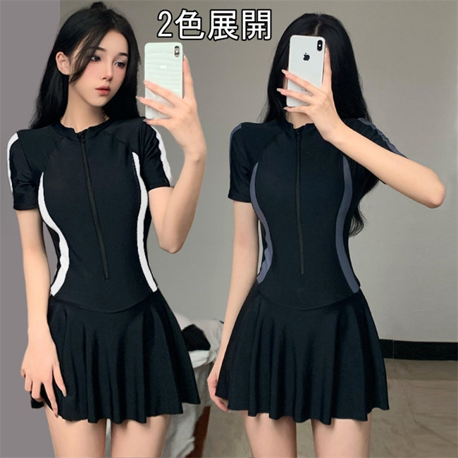 ブラック黒ワンピース水着 半袖 体型カ