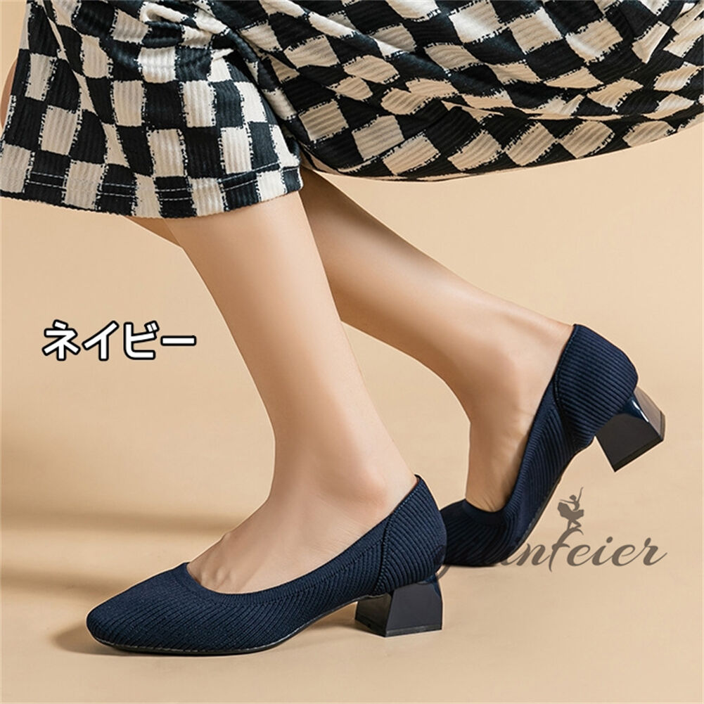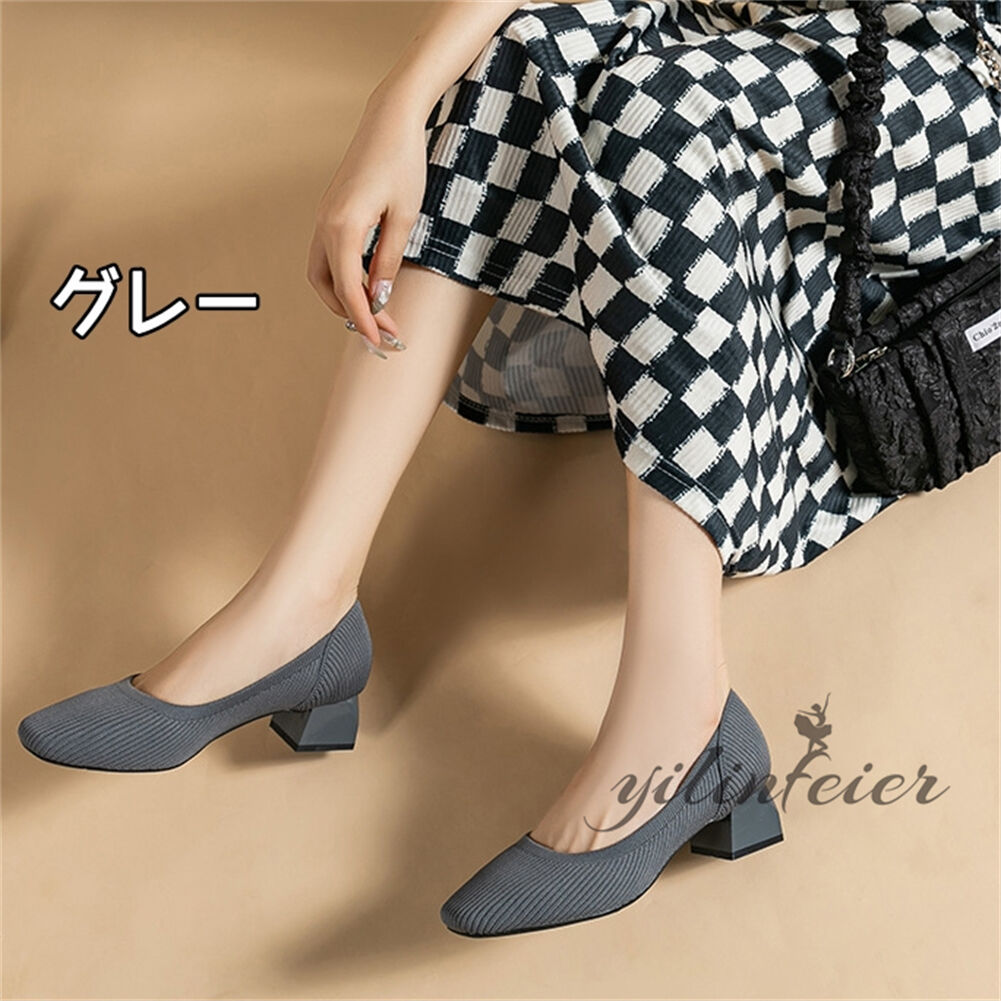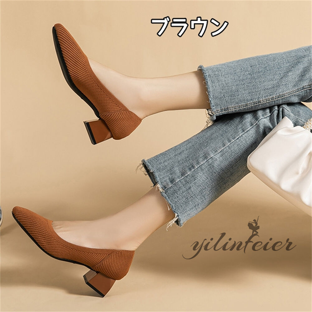 ニットパンプス ポインテッドトゥ 柔ら