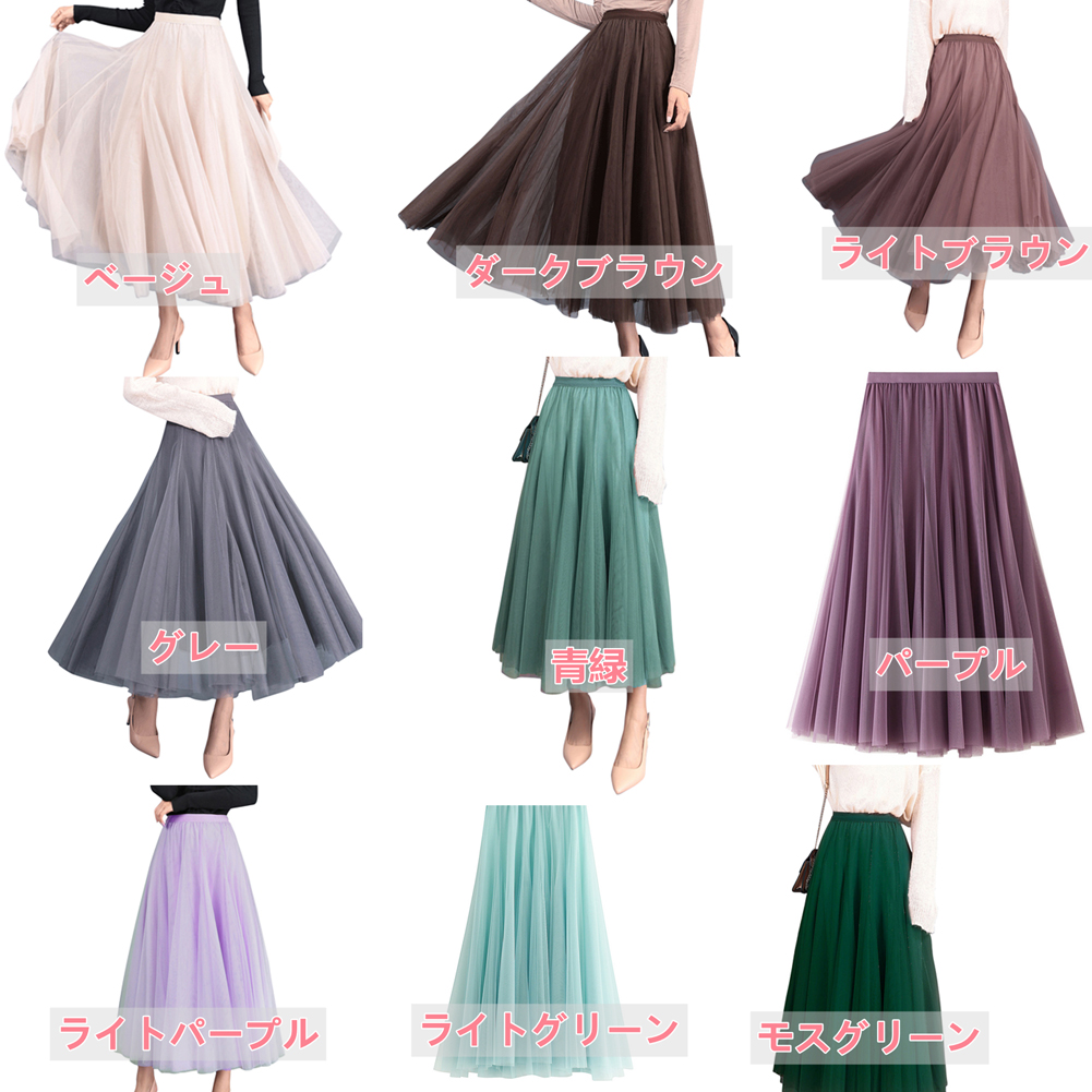 表記寸法と実寸値の多少の誤差はご了承ください。特徴 ふんわりとしたチュールプリーツが、癒しフェミニンな雰囲気を漂わせるスカート。ロマンティックに広がるシルエットで、お洒落で可愛い雰囲気たっぷりしたロングスカートが登場しました。ふわっとした重ねフリルが体型カバーしつつ、トレンドライクなロング丈で、どなたでも美脚度アップ!特徴 シンプルな無地デザインはどんなファッションとも合わせやすく、幅広いコーディネートに大活躍。お出かけはもちろん、通勤、通学も幅広く使えるアイテムです。季節問わずオールシーズン着まわせるアイテムです。秋冬はニットと合わせて、春夏になったらTシャツなどのシンプルなトップスにあわせていただくと長く使えて便利のプリーツスカートです。用途 OL、通勤、通学、お出かけ、パーティー、披露宴、同窓会、発表会、主役になる大人上品スカートです。注意事項 製造工程の関係上、各採寸箇所実寸(平置き)より【約-2cm~+2cm】程度は誤差の許容範囲とさせて頂いております。※撮影環境やパソコンのディスプレイなどの影響により色が若干違って見える場合もあります。