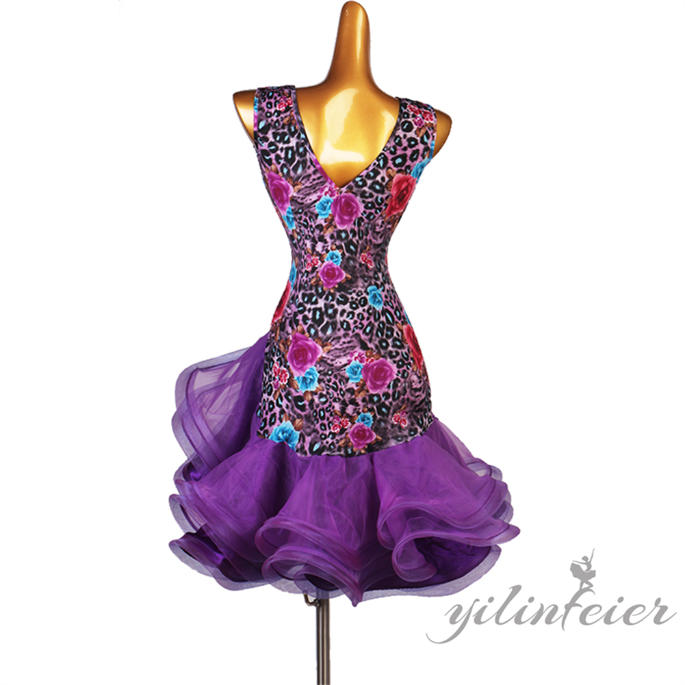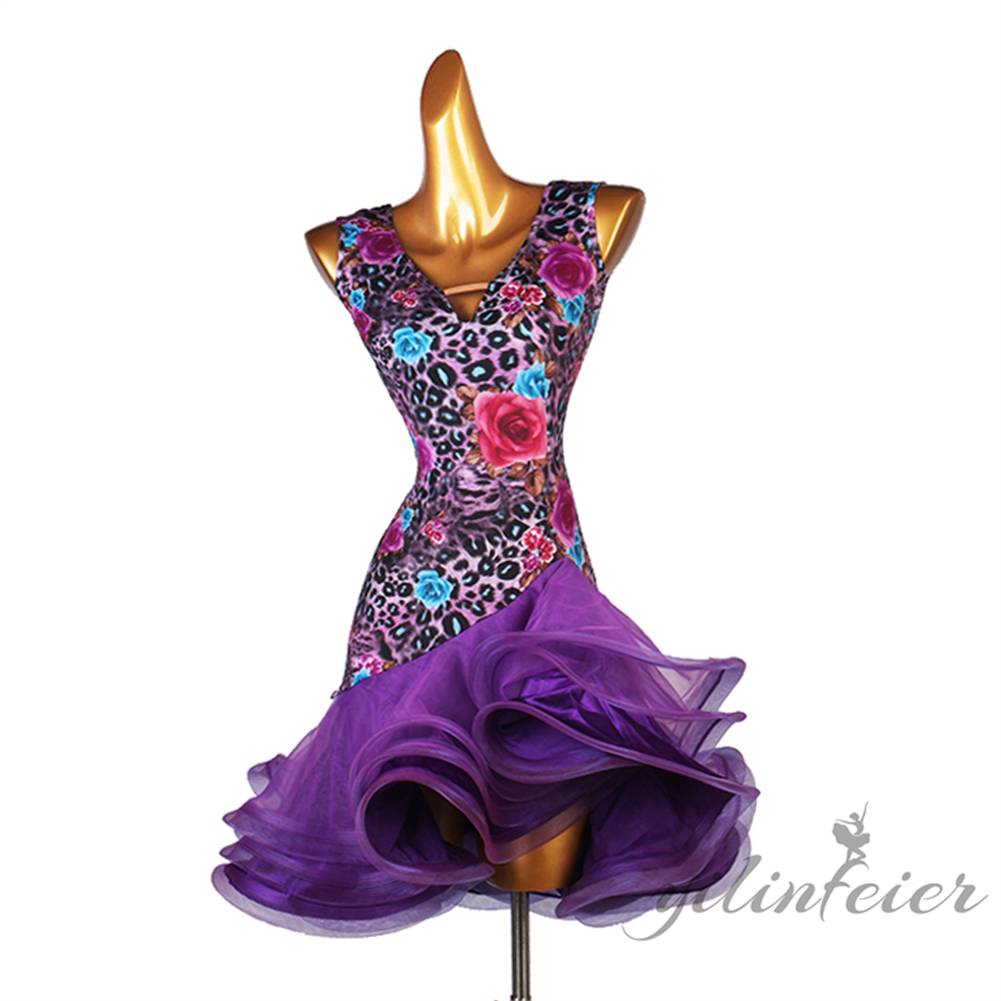 ラテンダンス発表会用ドレス ワルツ ラテン系 ダンスドレス ワルツ用 社交ダンスドレス 発表会用 競技ダンス 豪華 大合唱 フラワー ラテン 開場ドレス ワンピース衣装 ラテンワンピース