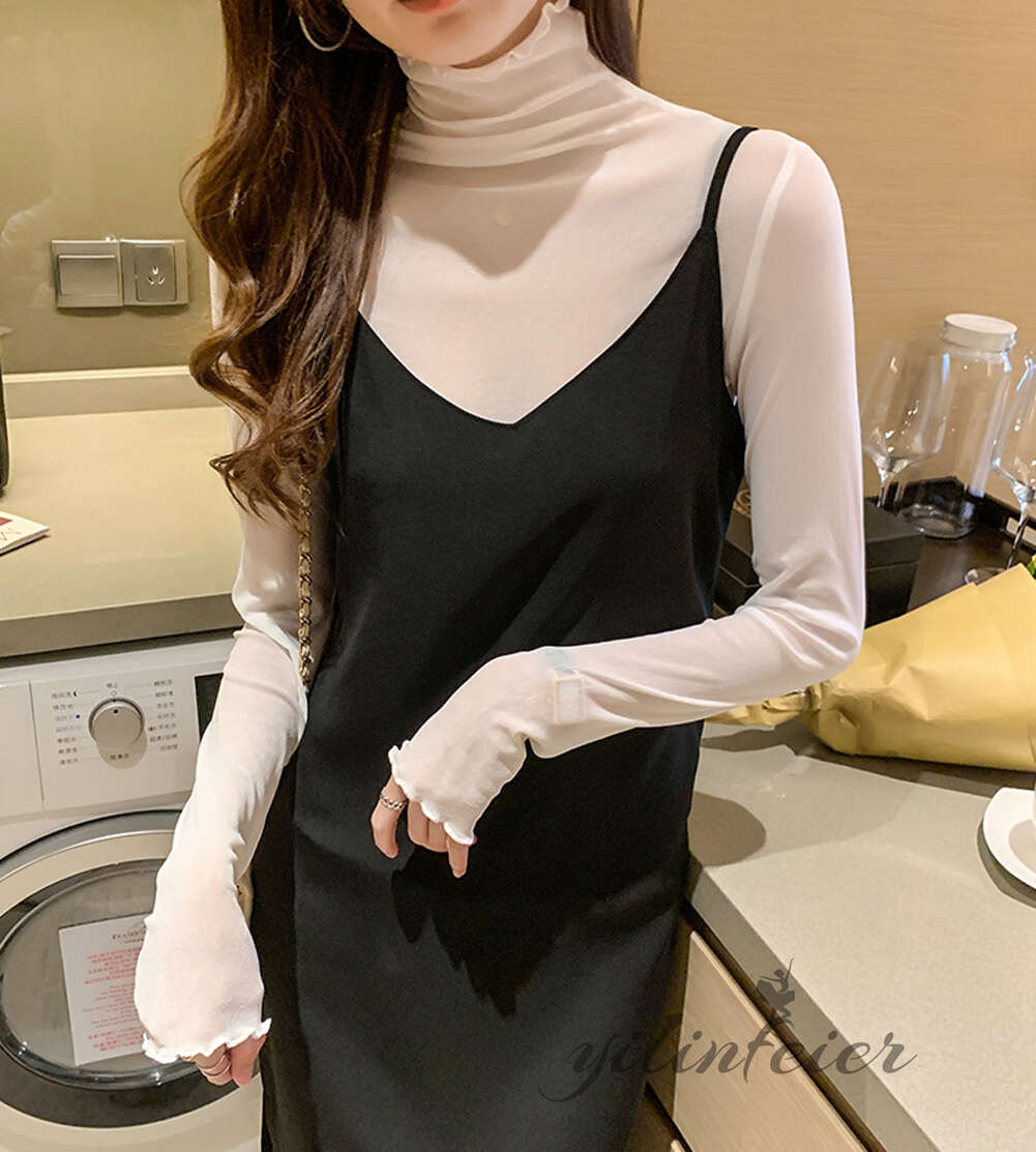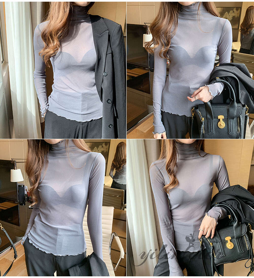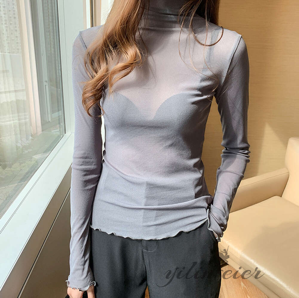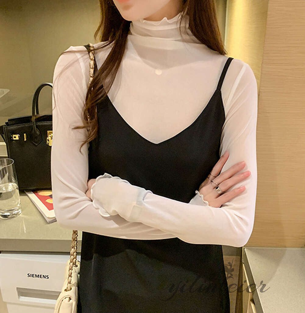 スタンドカラーで露出しすぎず、品の良い透け感です。