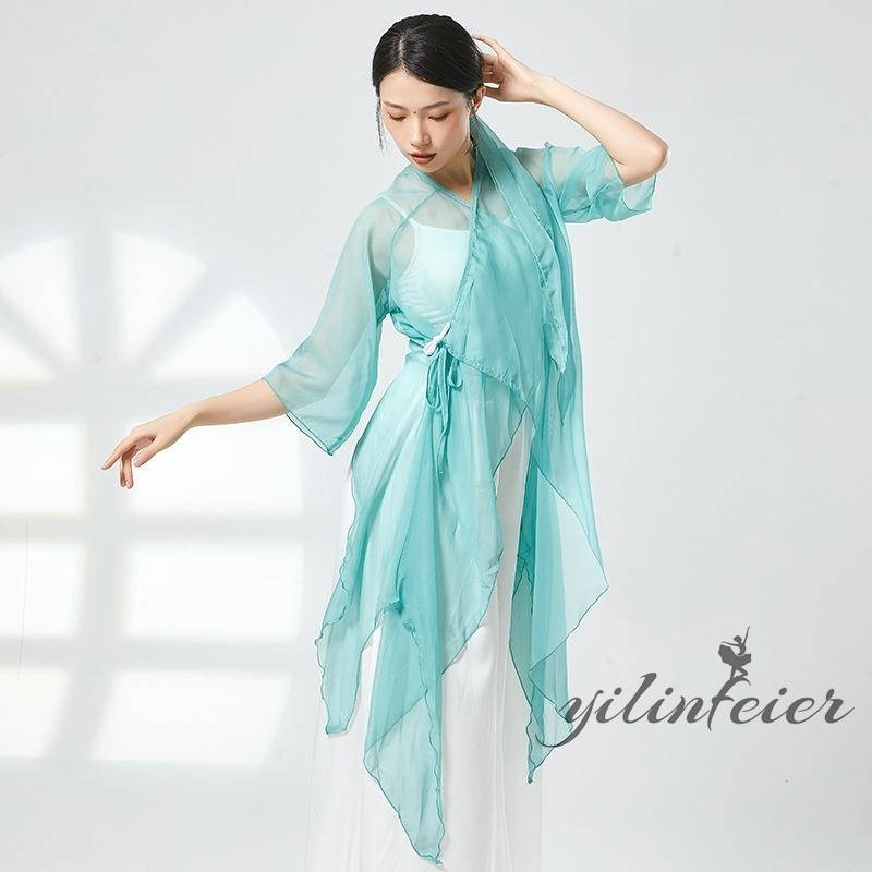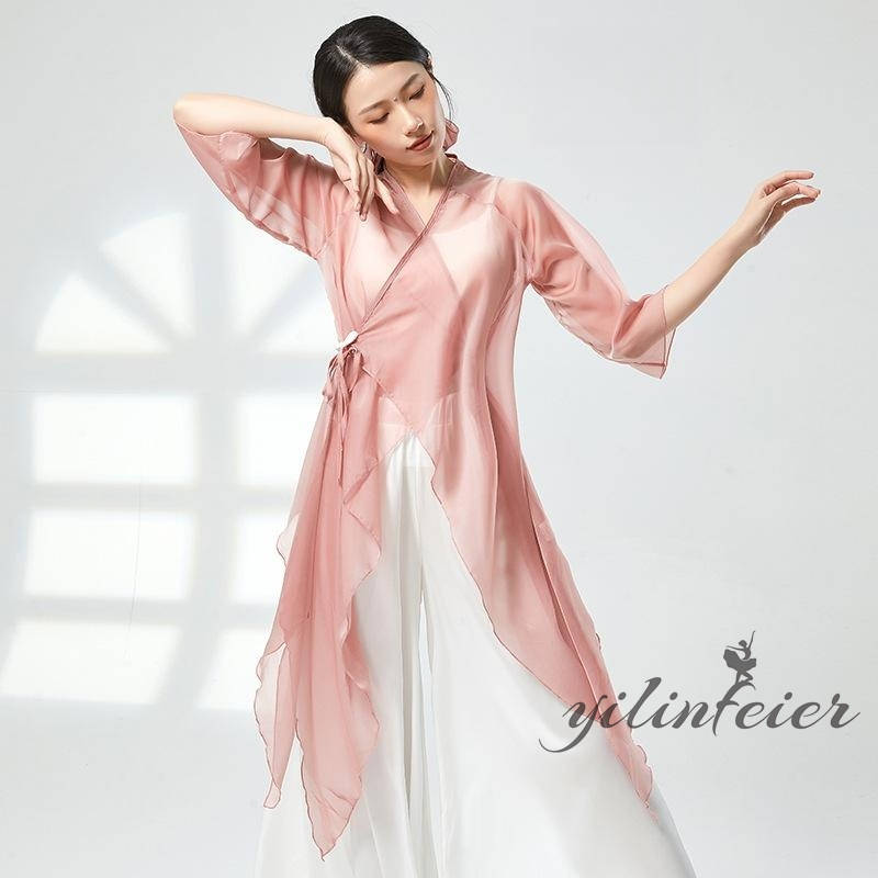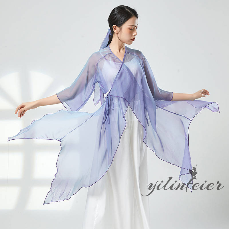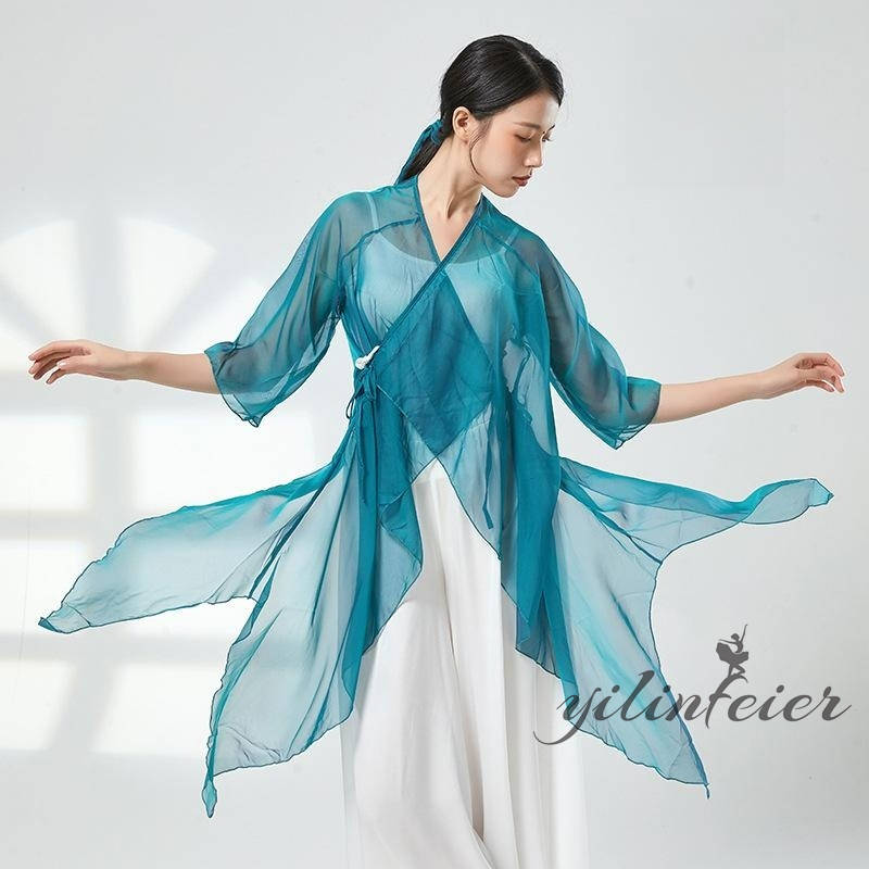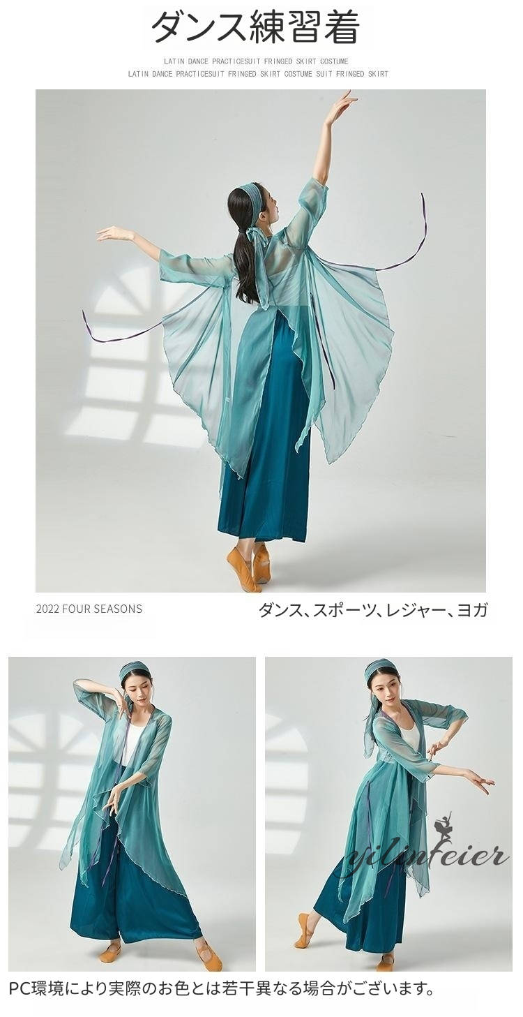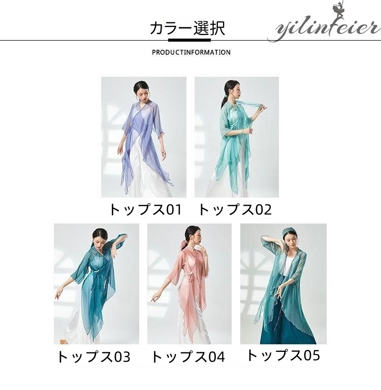 ダンス レッスン着 シアー プルオーバー ダンスパンツ グラデーションカラー トップス Vネック クラーデション 練習着 コンテンポラリーダンスウェア 古典舞踊衣装 民族ダンスウェア