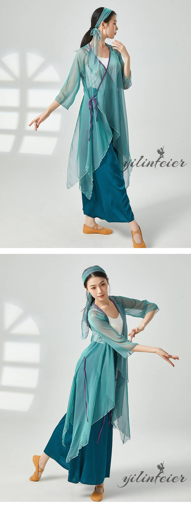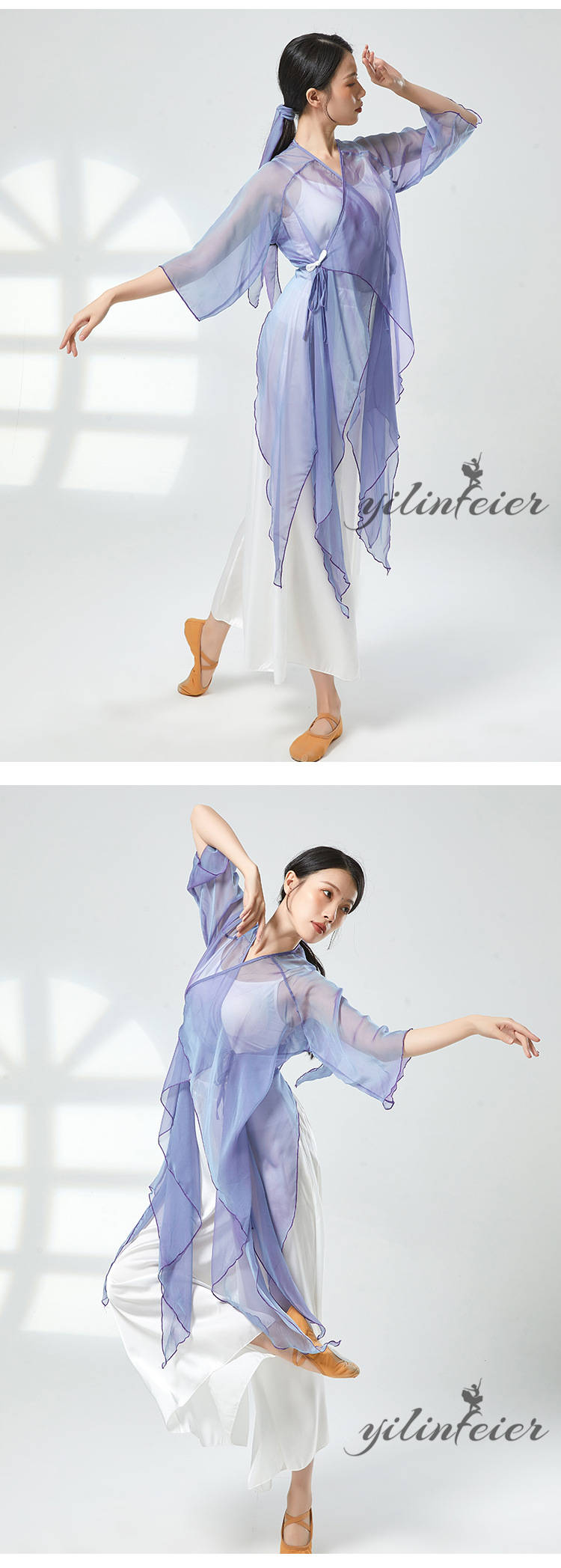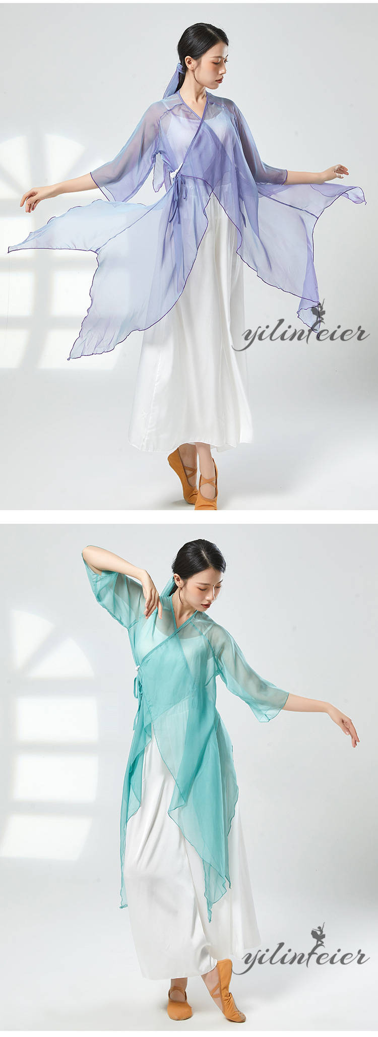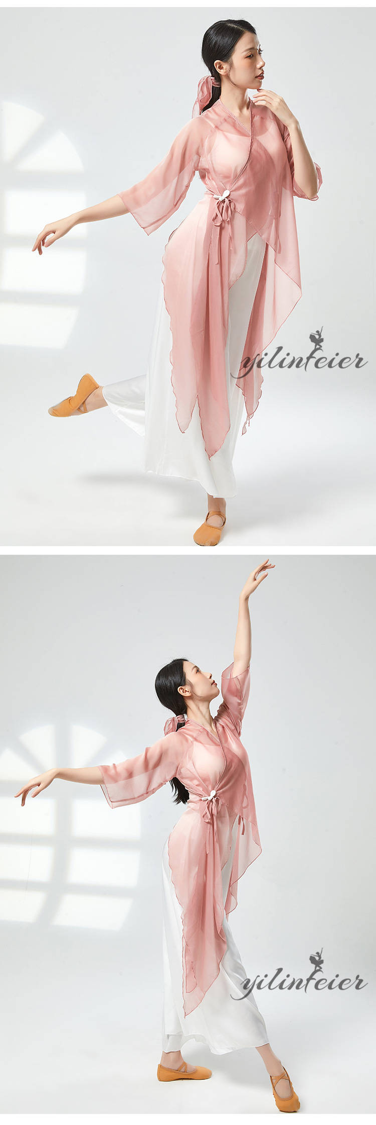 ダンス レッスン着 シアー プルオーバー ダンスパンツ グラデーションカラー トップス Vネック クラーデション 練習着 コンテンポラリーダンスウェア 古典舞踊衣装 民族ダンスウェア