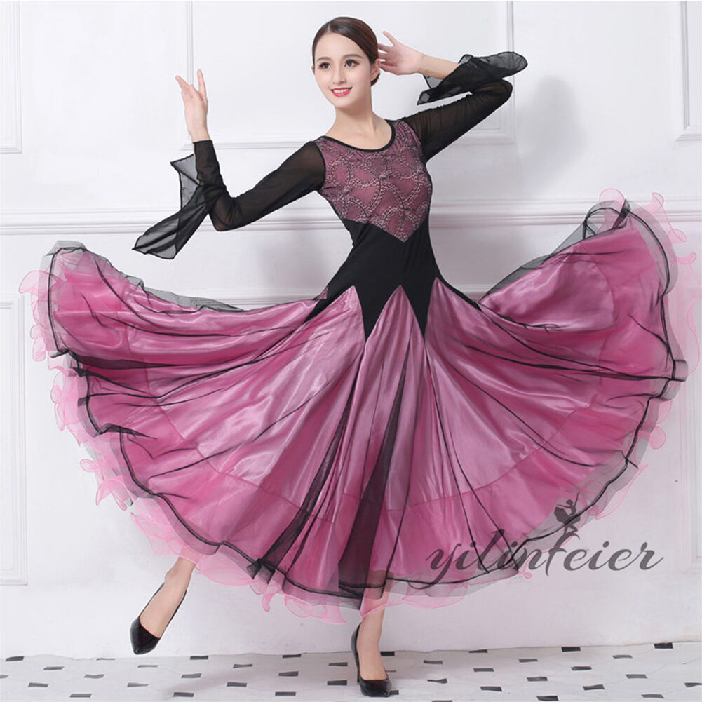 社交ダンス レディース ダンスドレス 衣装 ワルツ ワンピース イベント 大きい裾 モダン ドレス 社交ダンス衣装 広がる裾 スタンダード レッスン着 演出用 高級感 踊りドレス 大人気