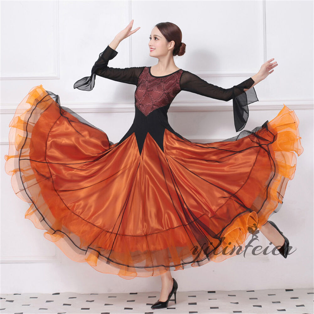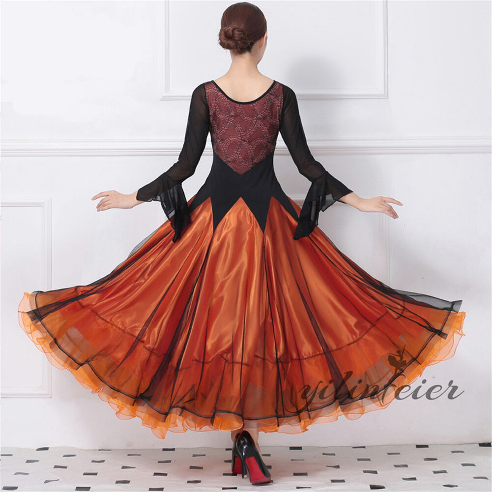 表記寸法と実寸値の多少の誤差はご了承ください。オーダーメイド この商品は無料でオーダーメイドが可能でございます。発注後、メールにて希望サイズをお知らせください。(身長 体重 バスト ウエスト ヒップ 希望の着丈)特微 着た時・歩いた時のシルエットがとても美しい。軽くてフレアもたっぷり入っているので綺麗に揺れます。ストレッチ素材で動きやすく、練習等におすすめのレディース社交ダンスウェアです特微 デザインが上品で、工芸が細かくて、本当の上品です。