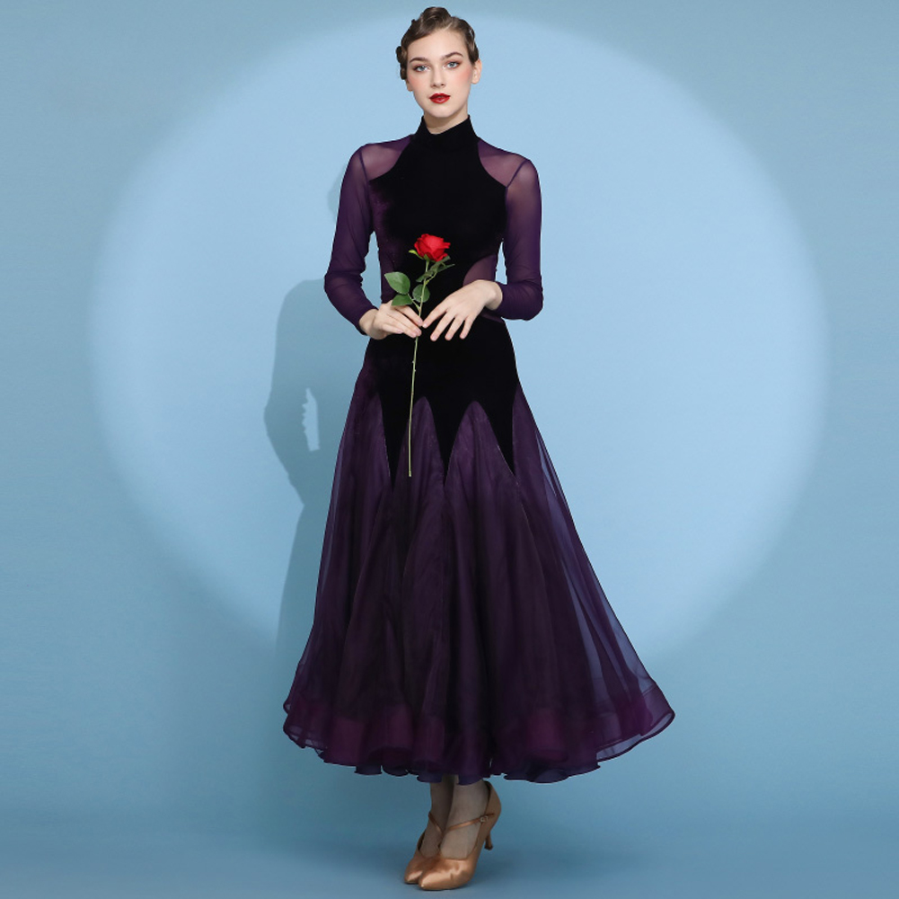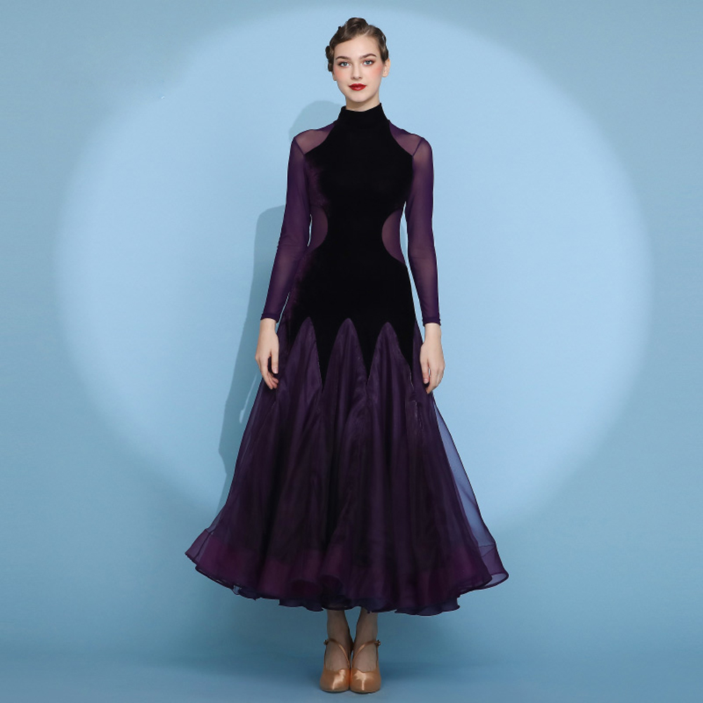 ★女性ワルツダンスドレス大きい裾ワルツに向きセクシーな踊りドレス ダンスドレス 舞踏 踊り ドレス 発表会用ドレス ワンピース 舞台服 社交ダンスドレス