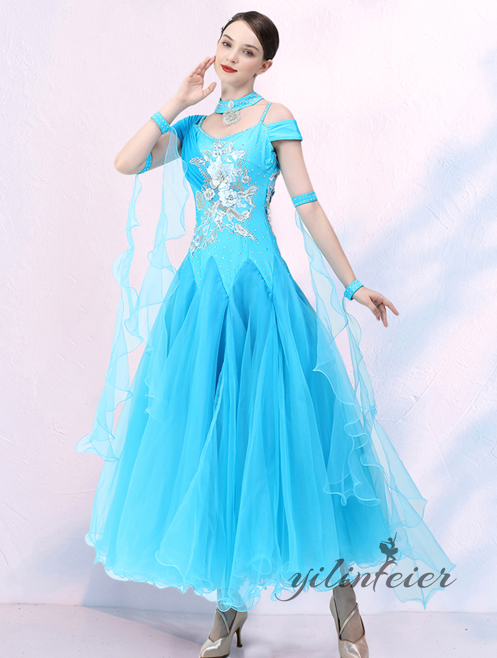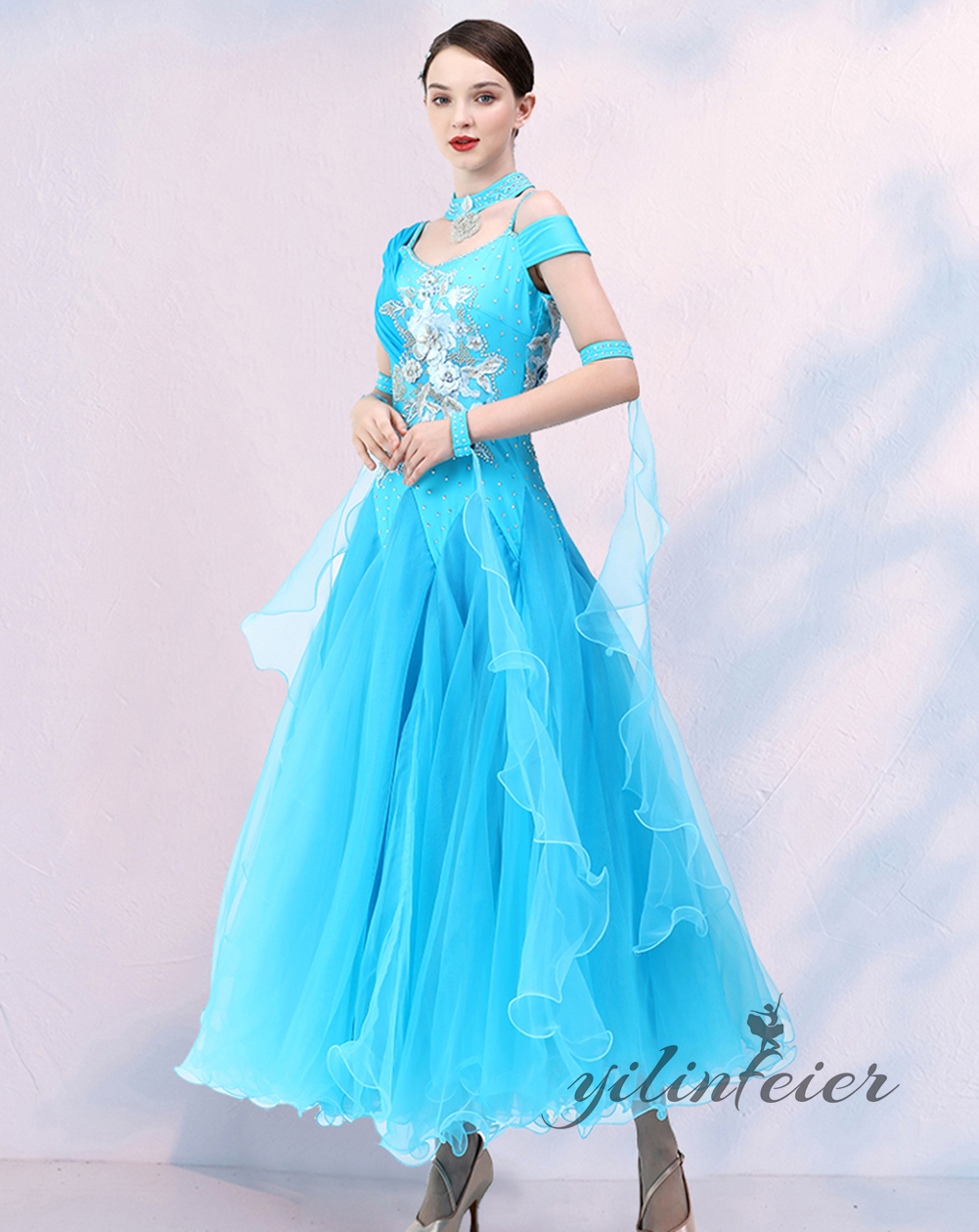 社交ダンス レディース ダンスドレス 衣装 ワルツ ワンピース イベント 大きい裾 モダン ドレス 社交ダンス衣装 広がる裾 スタンダード レッスン着 演出用 高級感 踊りドレス 大人気