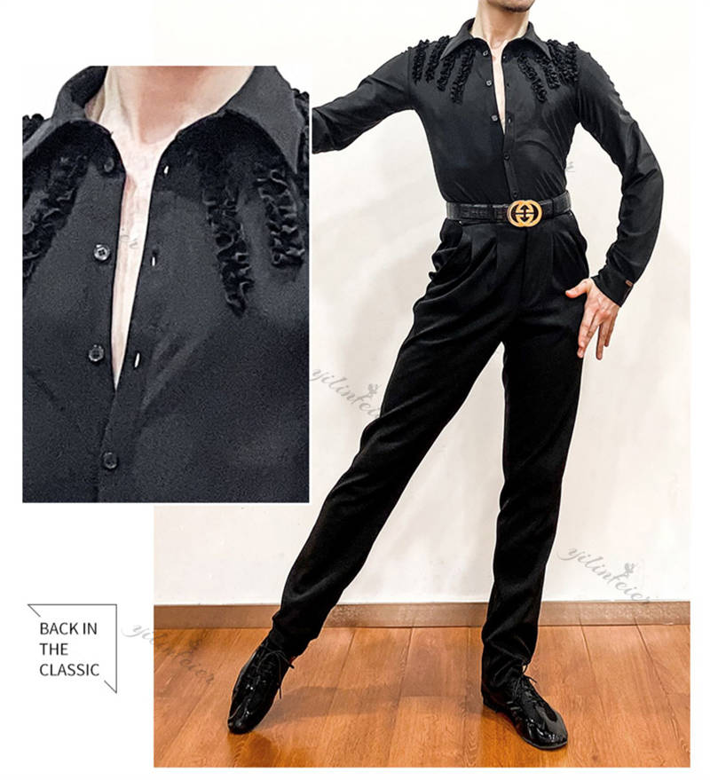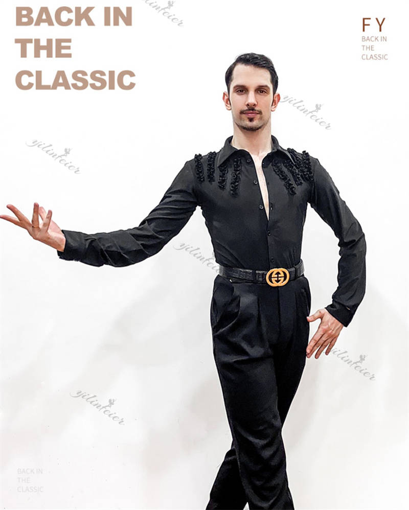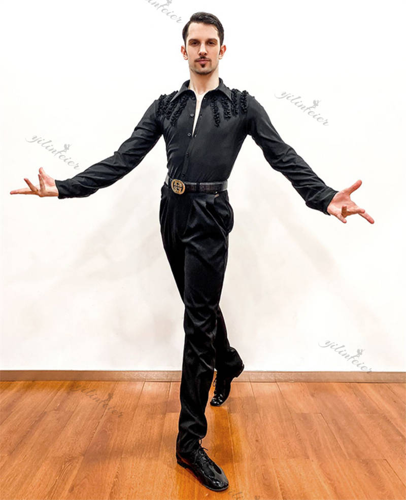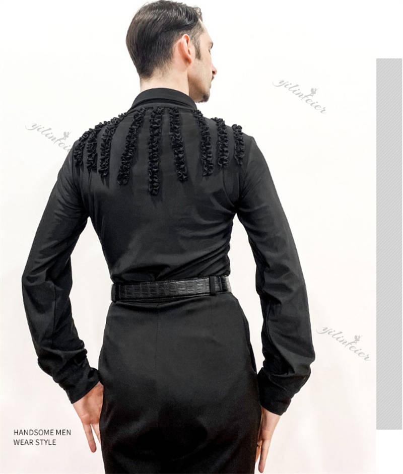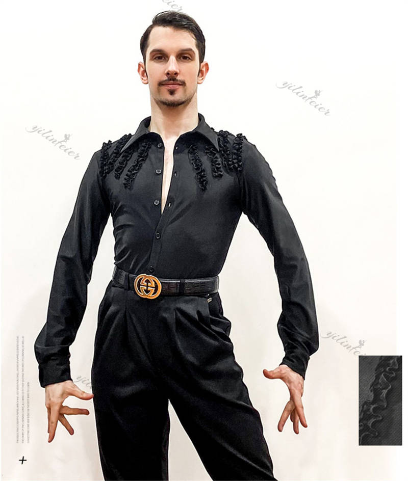 社交ダンス メンズ シャツ トップス ラテンダンス 男性用 ダンスウェア 練習着 ラテン ルンバ チャチャ 舞台衣装 ステージ衣装 演出服 ダンス発表会 パーティー 長袖シャツ 着心地良い
