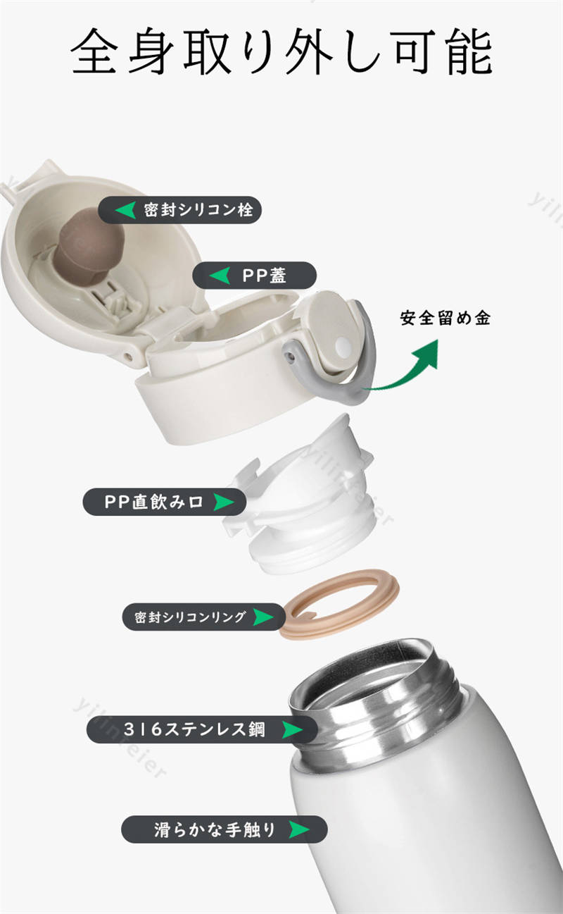 シリコーン、PP商品説明 ・ステンレス真空二重構造で保冷・保温力がUP!飲み物の温度を長時間キープ。