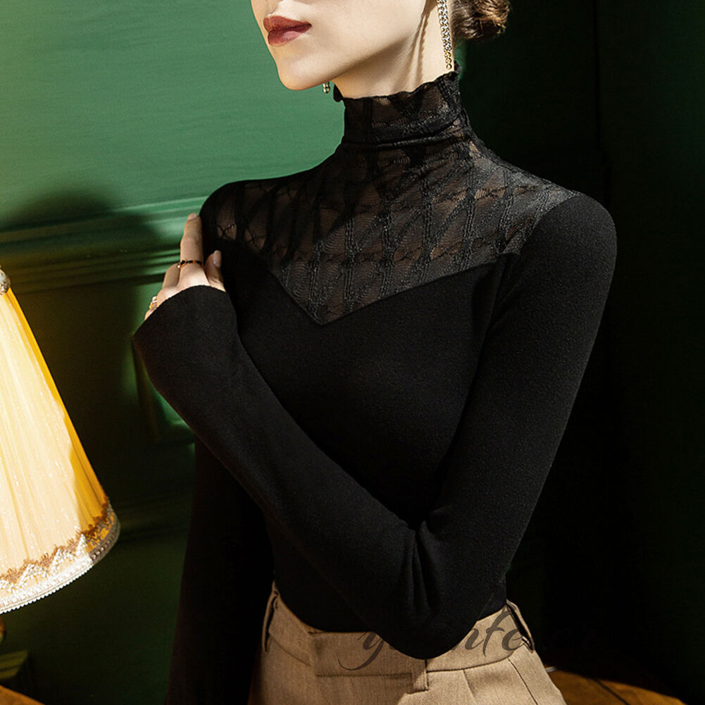 スタンドカラーで露出しすぎず、品の良い透け感です。