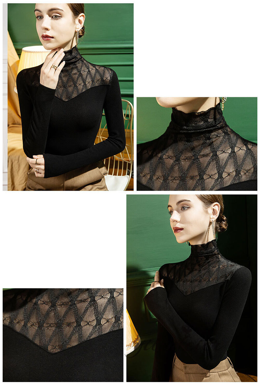 レディース トップス カットソー 長袖 ハイネック 重ね着 インナー レイヤード tシャツ タートルネック シアー切替カットソー シースルー シアー カットソー 春秋冬 おしゃれ 透け 薄手