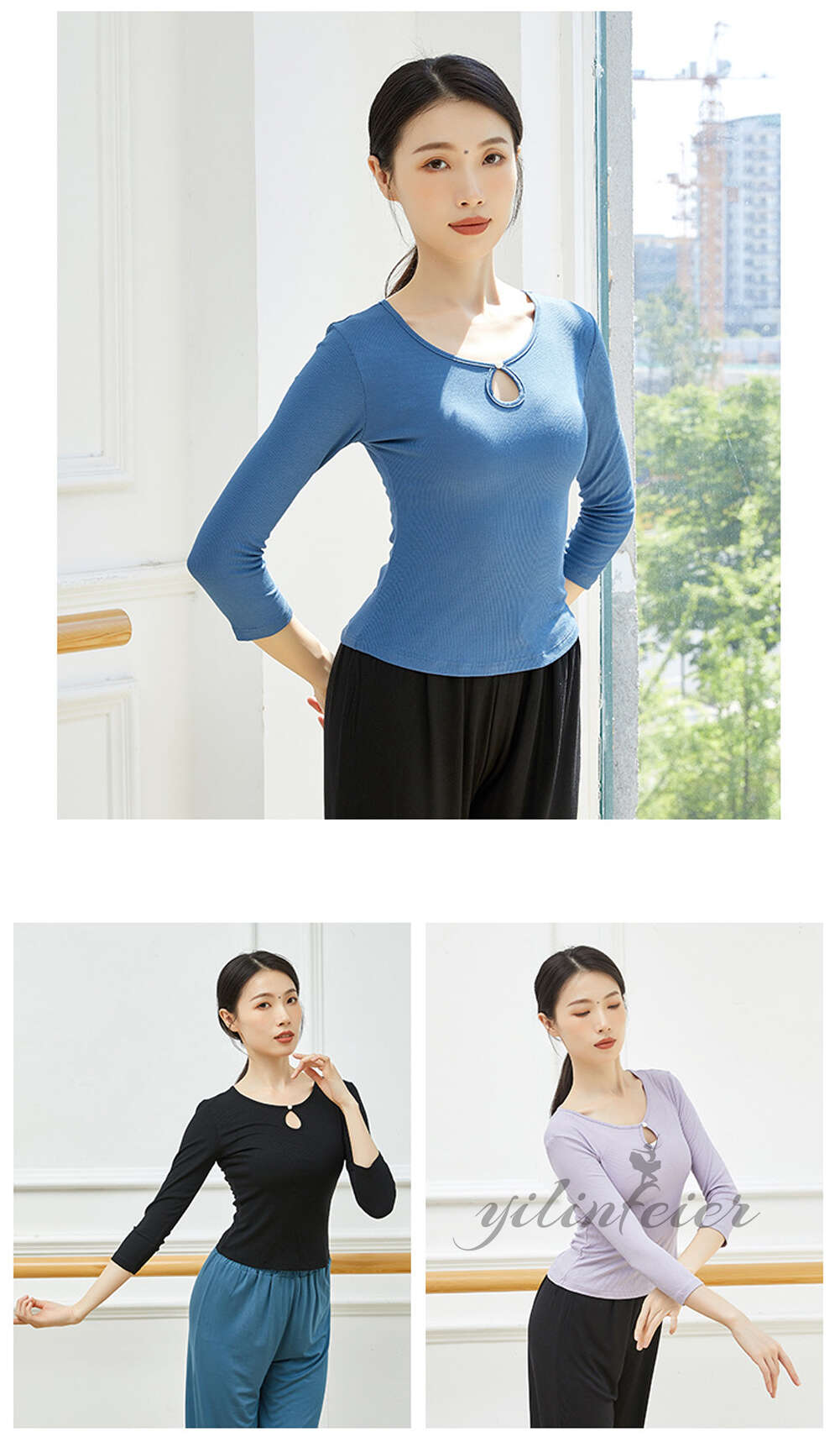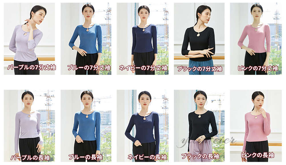 カラー: ブラックの7分丈袖 ピンクの7分丈袖 ブルーの7分丈袖 ネイビーの7分丈袖 パープルの7分丈袖 ブラックの長袖 ピンクの長袖 ブルーの長袖 ネイビーの長袖 パープルの長袖
