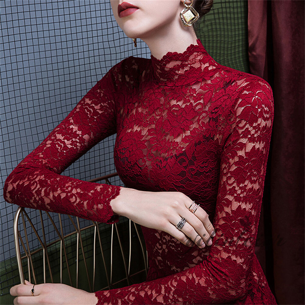 スタンドカラーで露出しすぎず、品の良い透け感です。