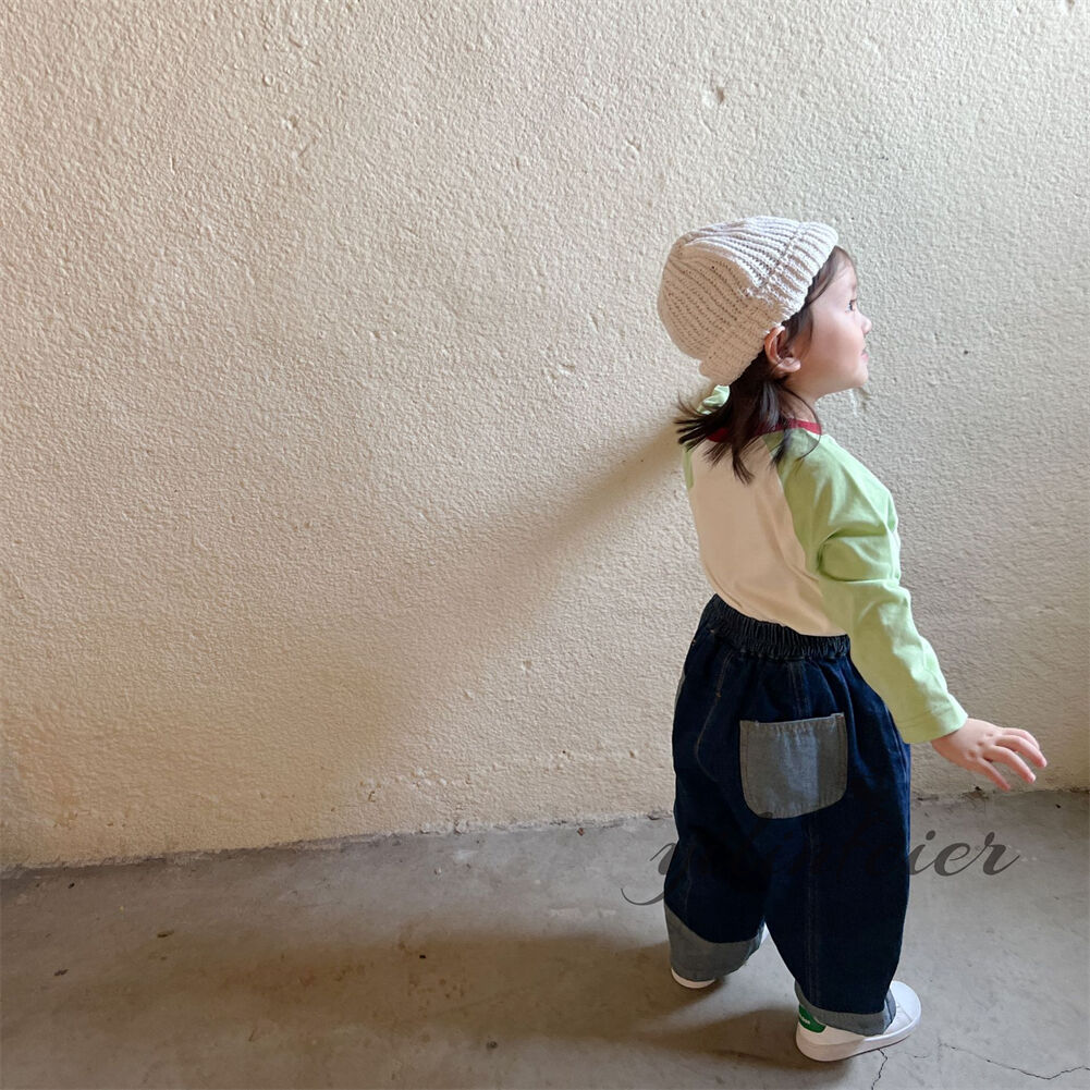 合わせやすいトップス一枚 トップス 長袖Tシャツ 子供服 キッズ 男の子 女の子 長袖トップス Tシャツ 無地 重ね着風 切替え 普段着 幼稚園 小学校 人気 80cm 90cm 100cm 110
