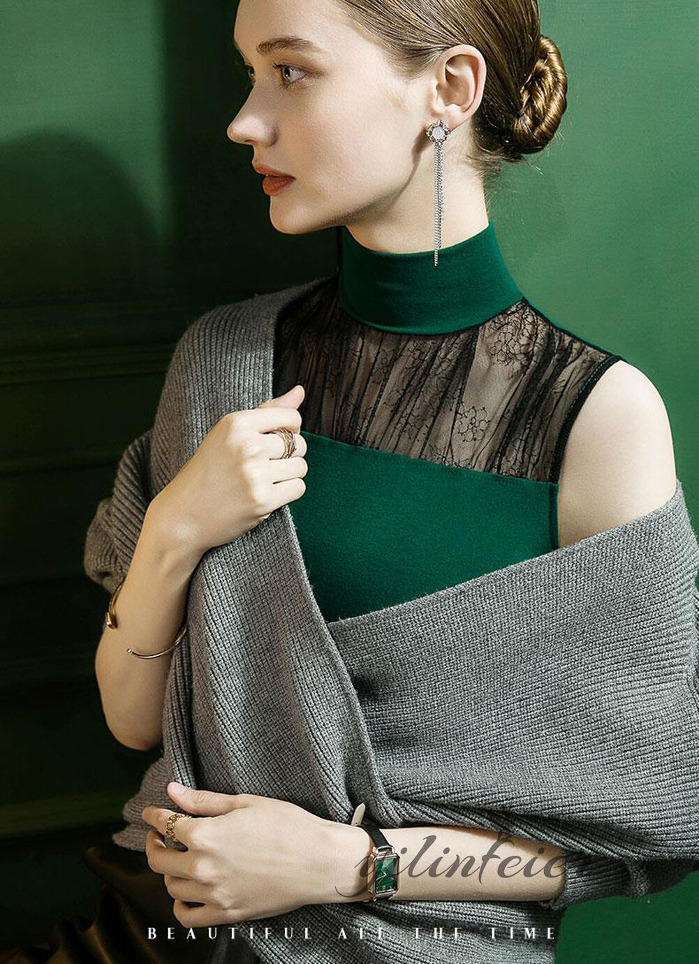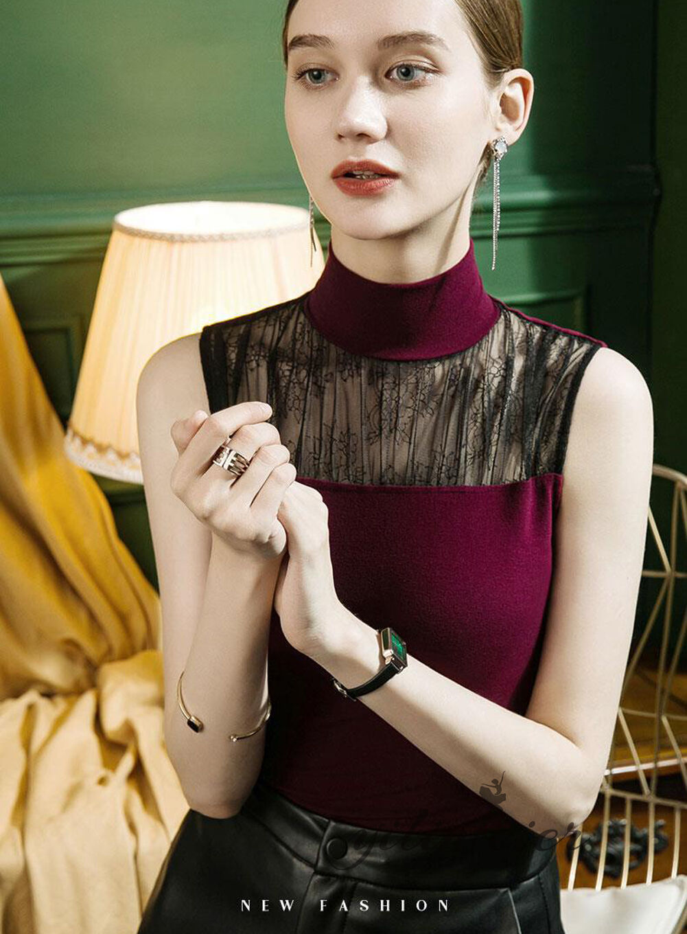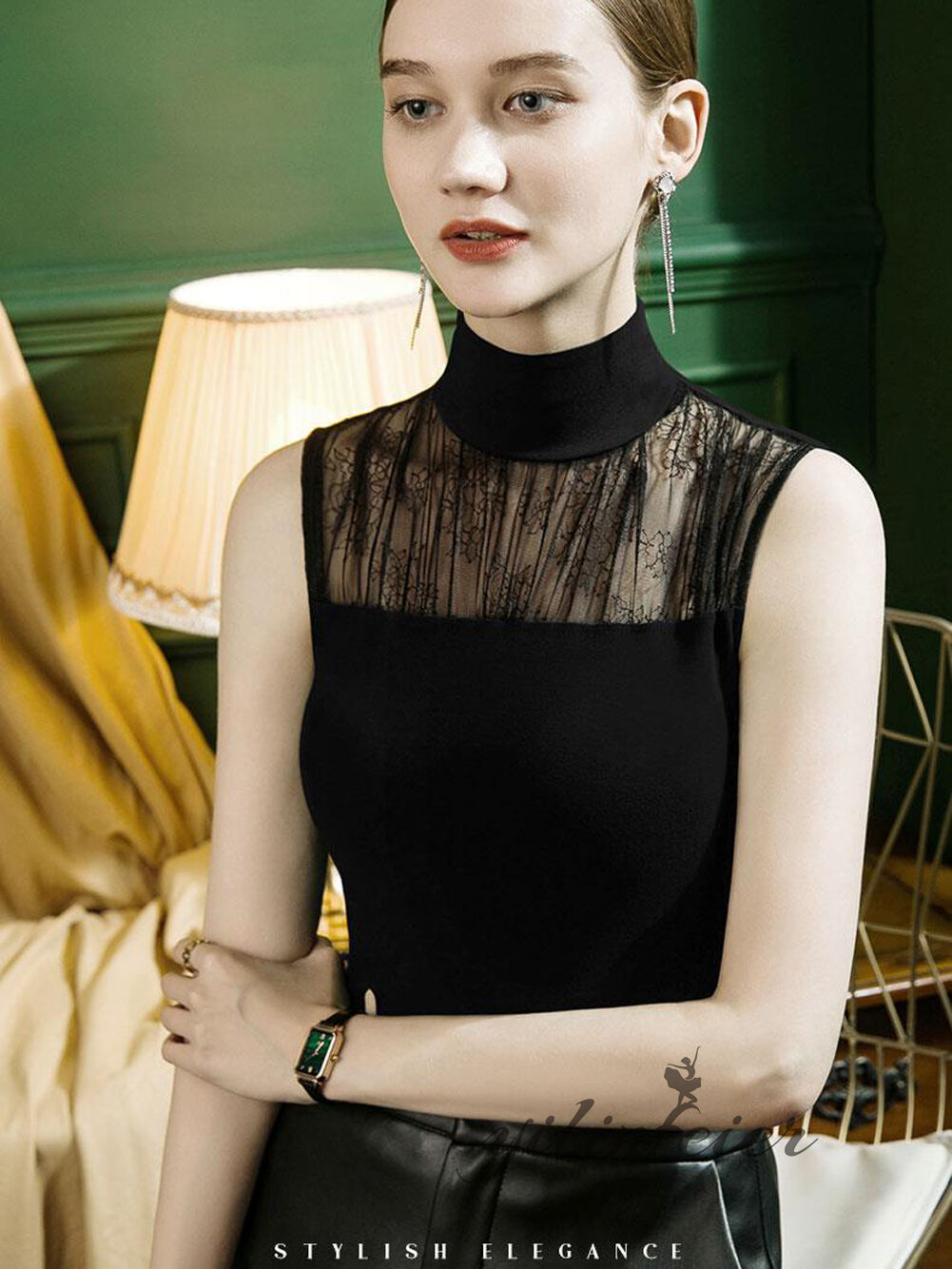 スタンドカラーで露出しすぎず、品の良い透け感です。