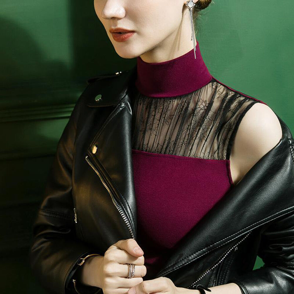 レディース トップス カットソー 長袖 ハイネック 重ね着 インナー レイヤード tシャツ タートルネック シアー切替カットソー シースルー シアー カットソー 春秋冬 おしゃれ 透け 薄手