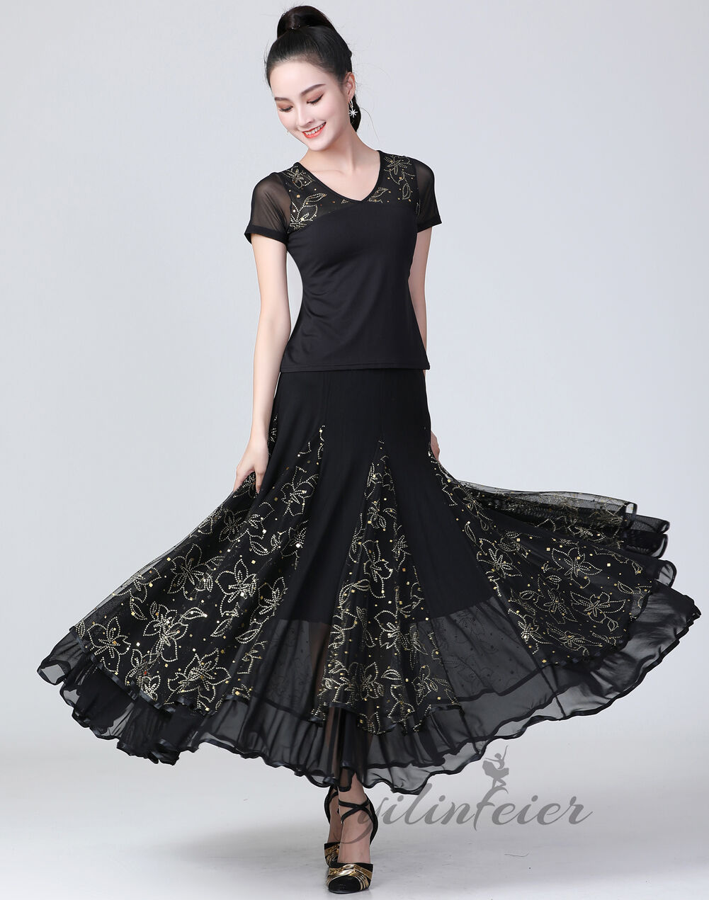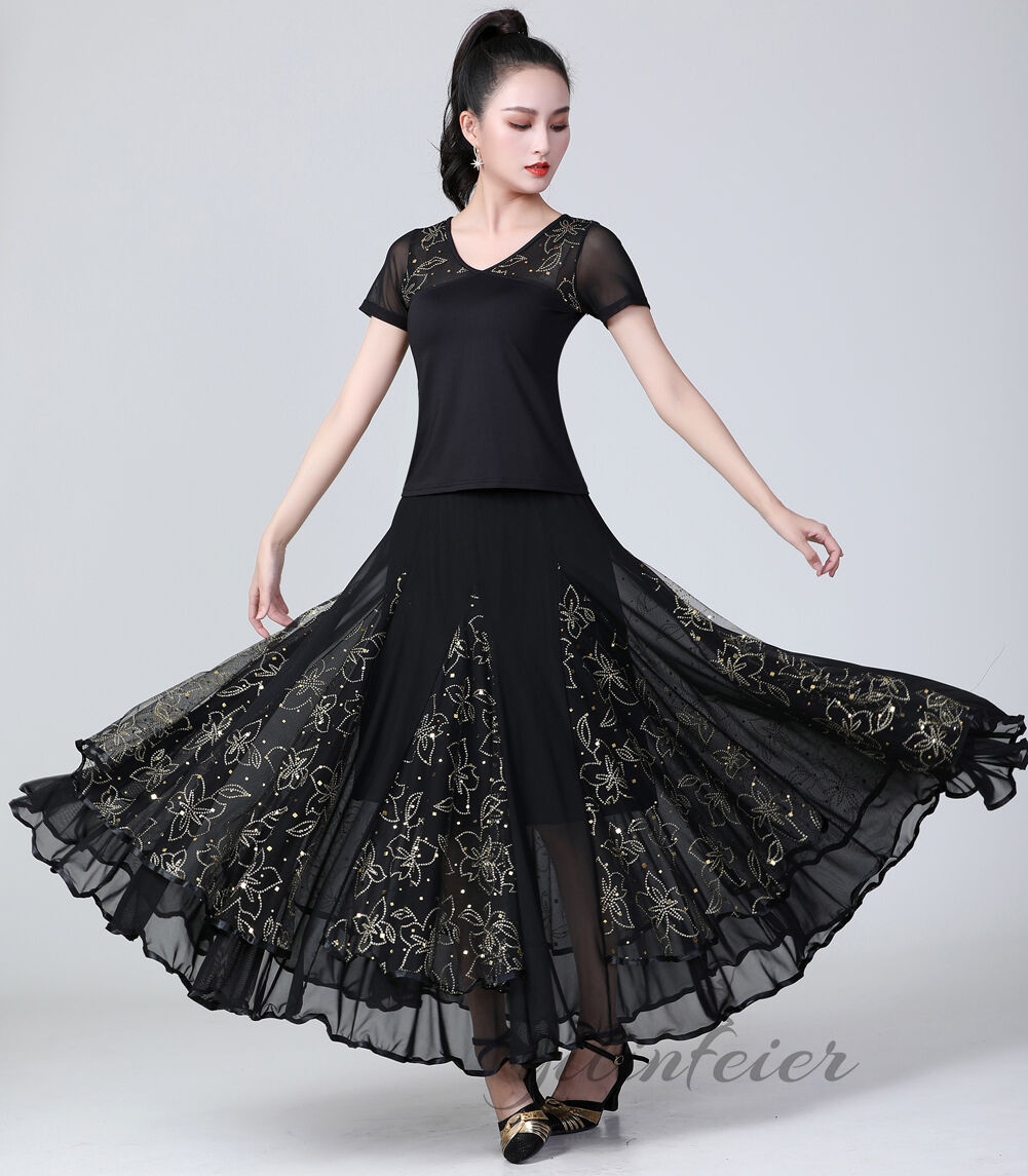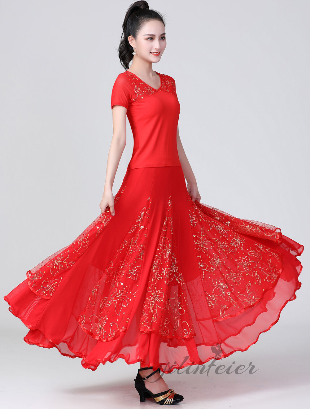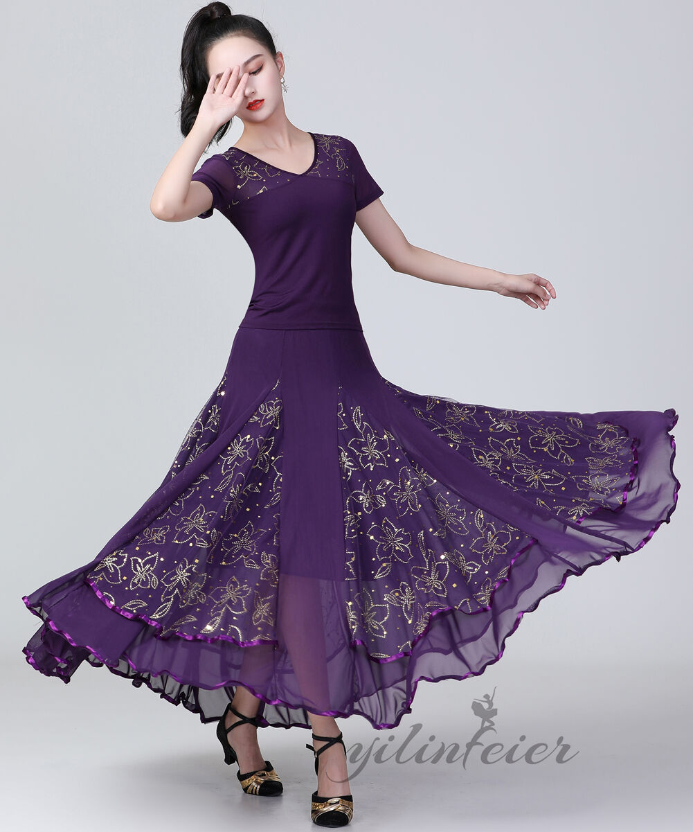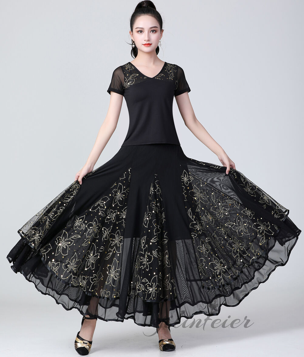 4XL/バスト98cm 上着丈59cm ウエスト68-106cm スカート丈90cm特微 着た時・歩いた時のシルエットがとても美しい。軽くてフレアもたっぷり入っているので綺麗に揺れます。ストレッチ素材で動きやすく、練習等におすすめのレディース社交ダンスウェアです特微 デザインが上品で、工芸が細かくて、本当の上品です。