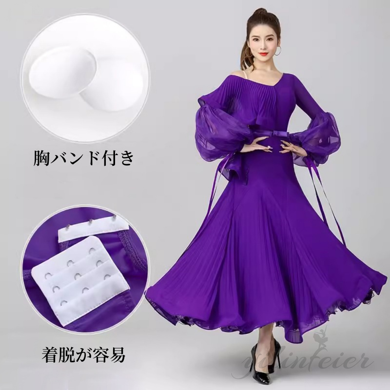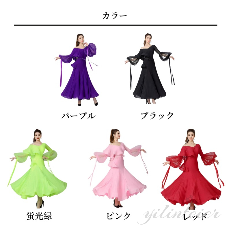 ★このドレスは、Sから3XLまでのサイズ展開があり、5色のバリエーションから選べるため、多様なニーズに応えることが可能です。レッスン着としてはもちろん、ソーシャルダンスやボールルームのイベントにもぴったりです。しわ加工された生地は、メンテナンスが容易でありながら高級感を演出し、長時間の着用でも快適さを保ちます。