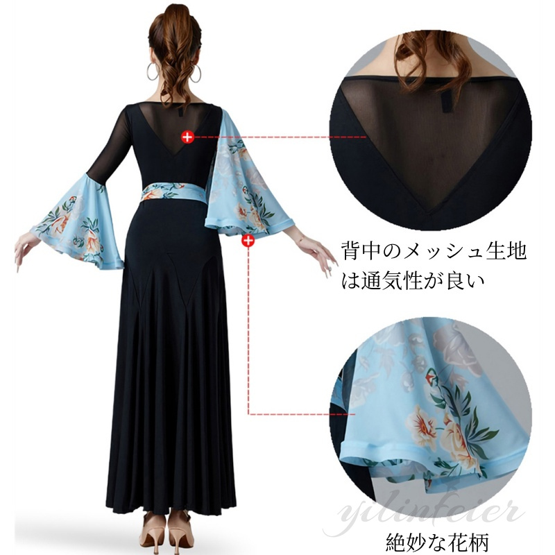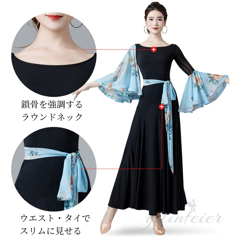 社交ダンス衣装 ドレス モダンドレス 社交ダンス 練習着 ワンピース ワルツドレス 広がる裾 ソシアルダンス衣装 ドレス 社交ダンス衣装 モダンダンス衣装 ワルツドレス 高級