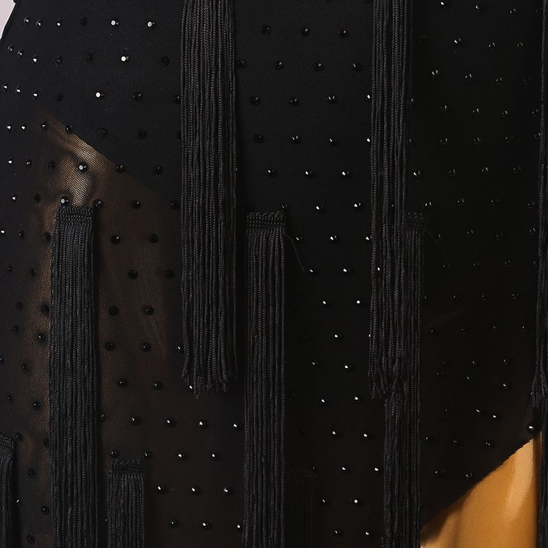 スタンダード ラテンダンス バックレスドレス ブラック ラテンドレス レディス スタンダードドレス レオタード 発表会 競技 練習 演出 タッセル 高級感 デモ用 練習用