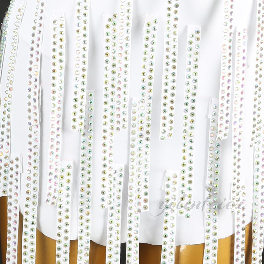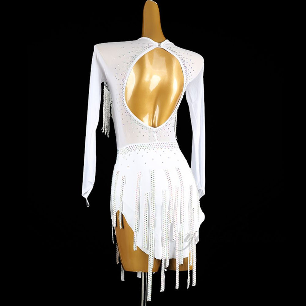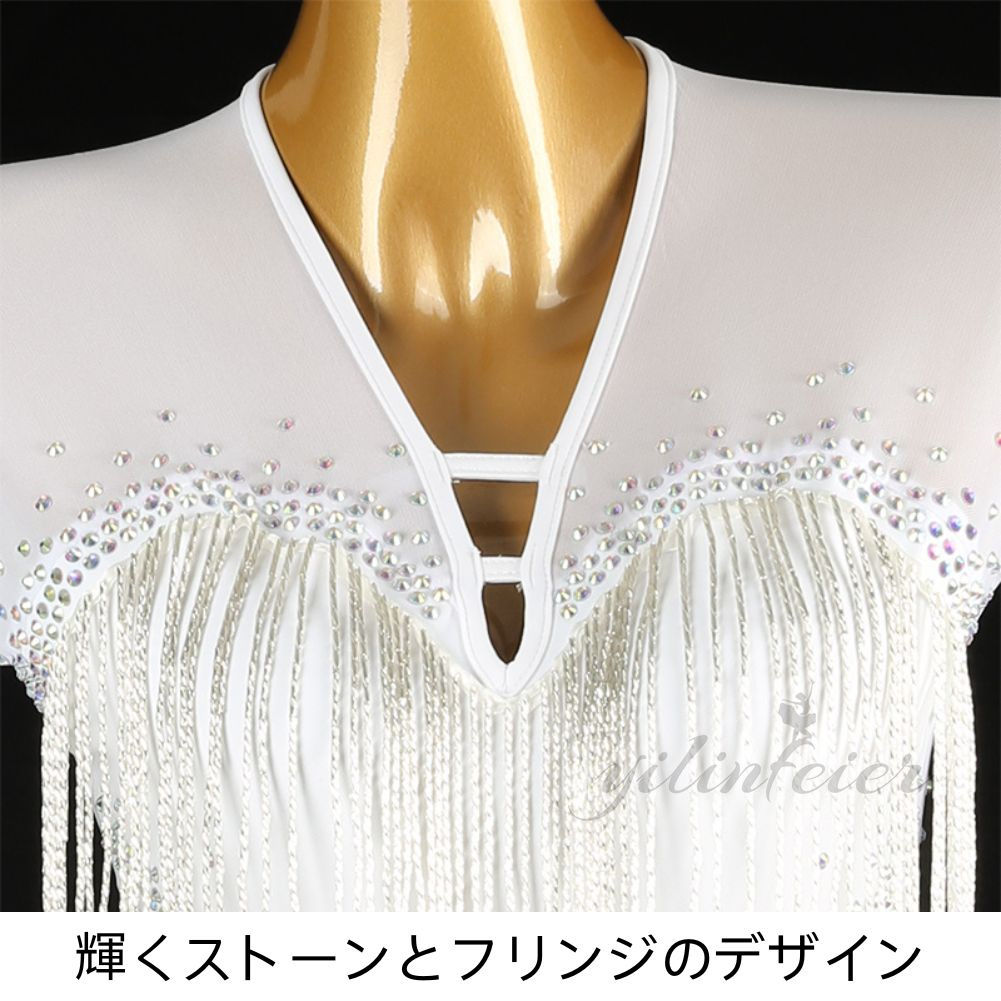 スタンダード テンダンス ラテンドレス ホワイト フリンジ スカート スタンダードドレス ラテン専用ドレス レッスン着 発表会 競技 練習 演出 タッセル 高級感 デモ用 練習用