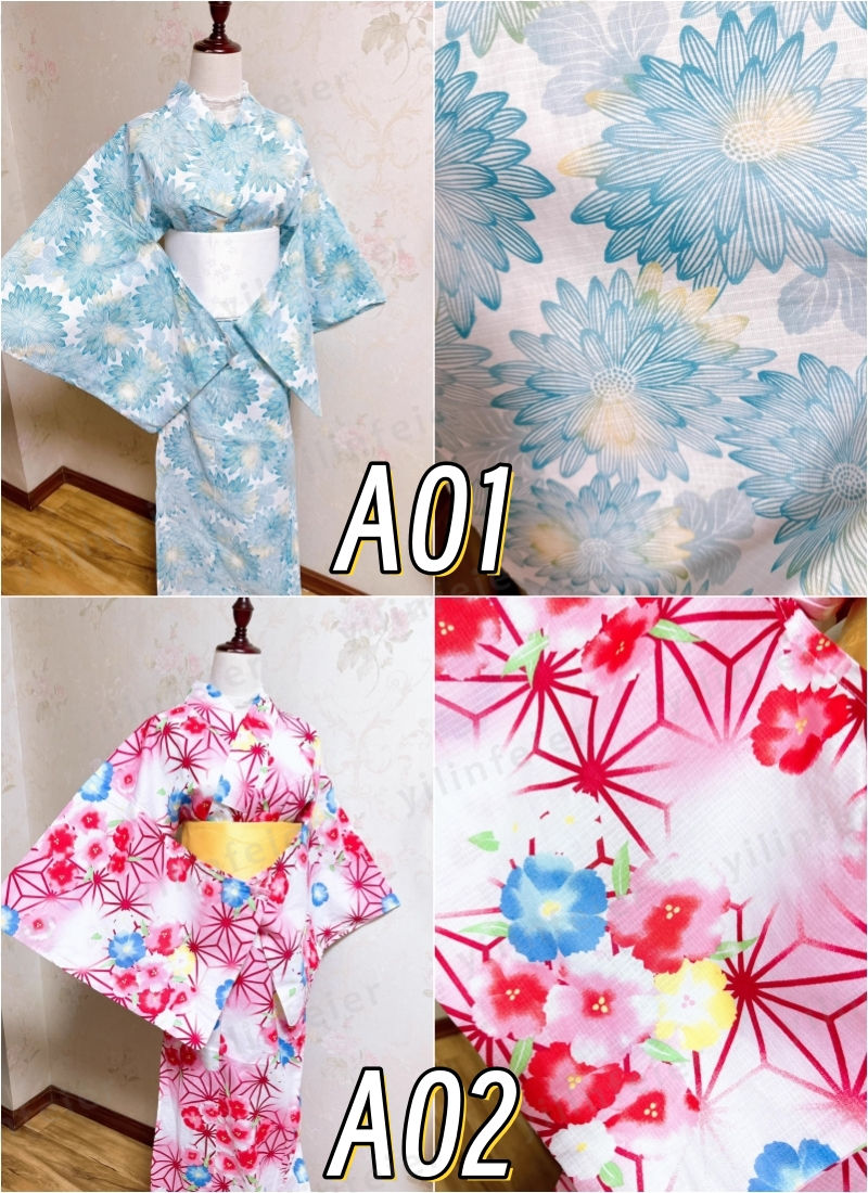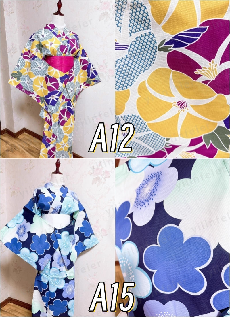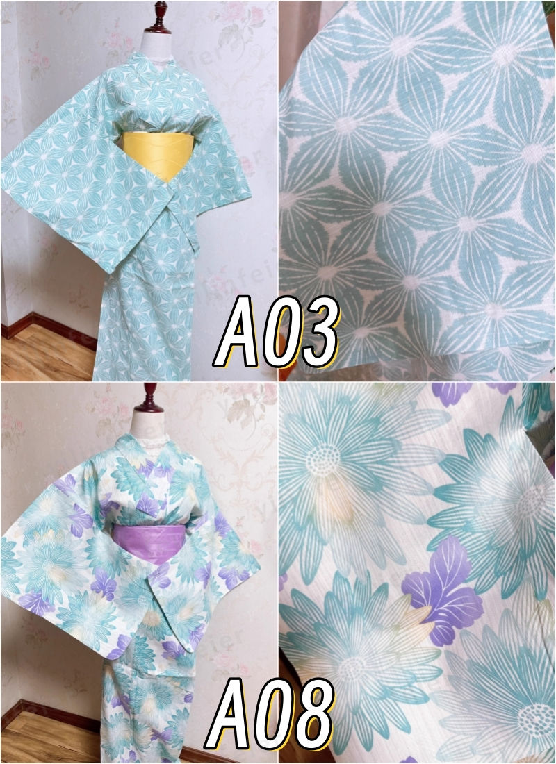 ★浴衣のデザインは非常に多様で、花柄や伝統的な和柄、幾何学模様など、さまざまな柄が揃っています。色もカラフルなものからシンプルなものまで幅広く、個々の好みに合わせて選べます。