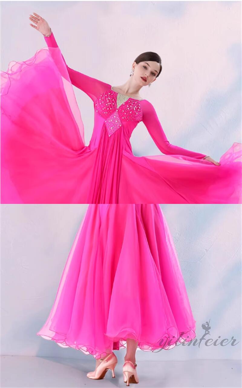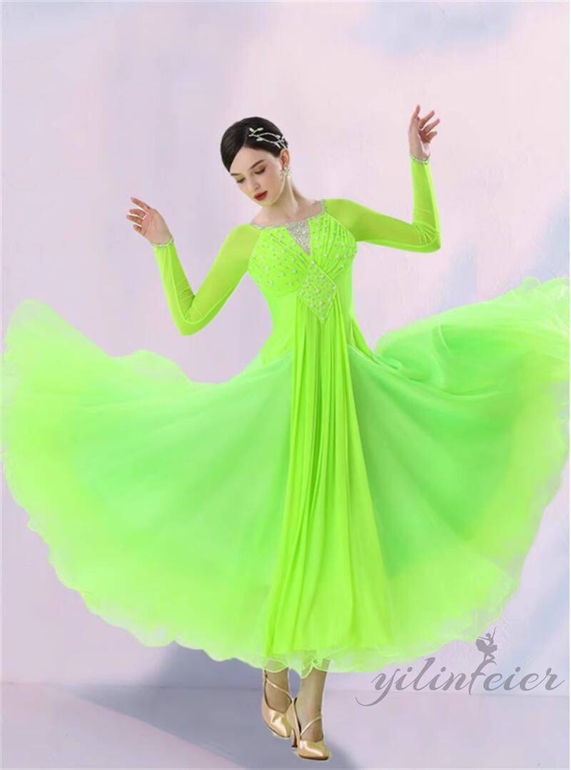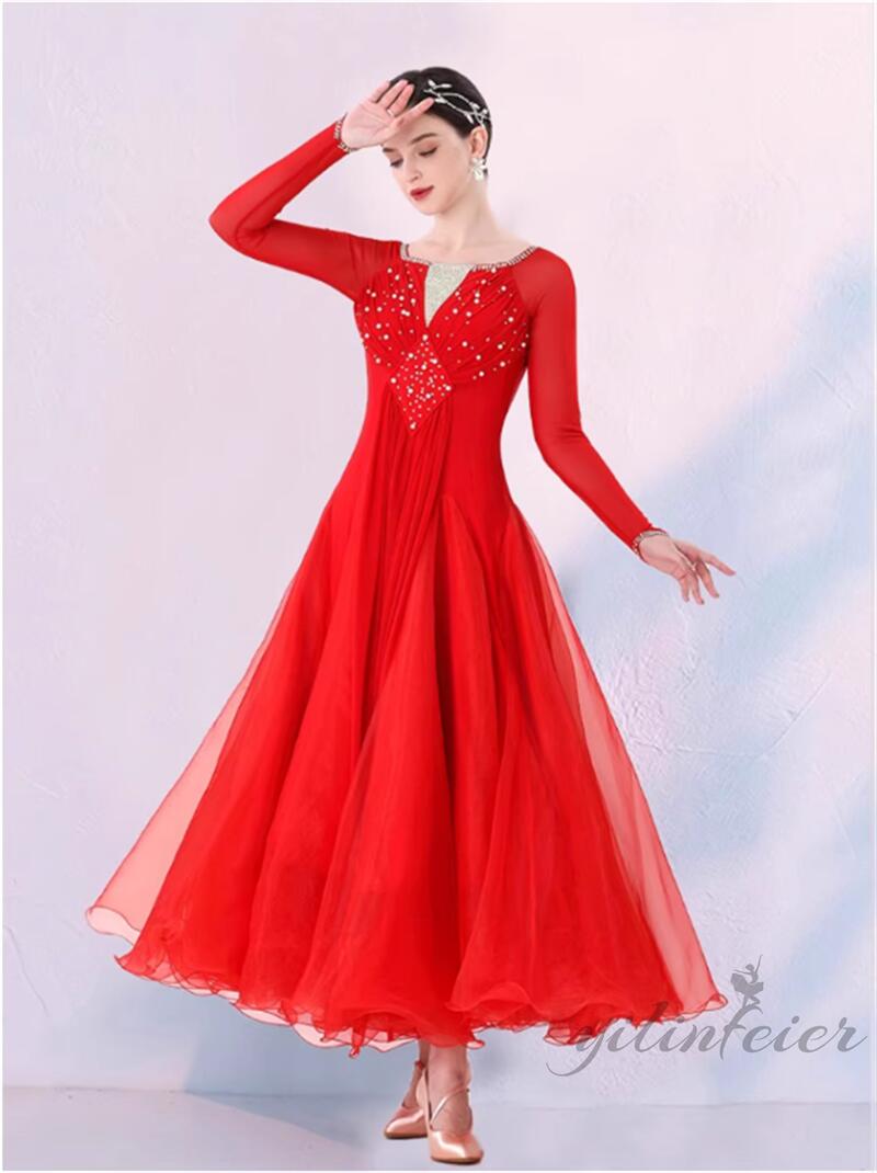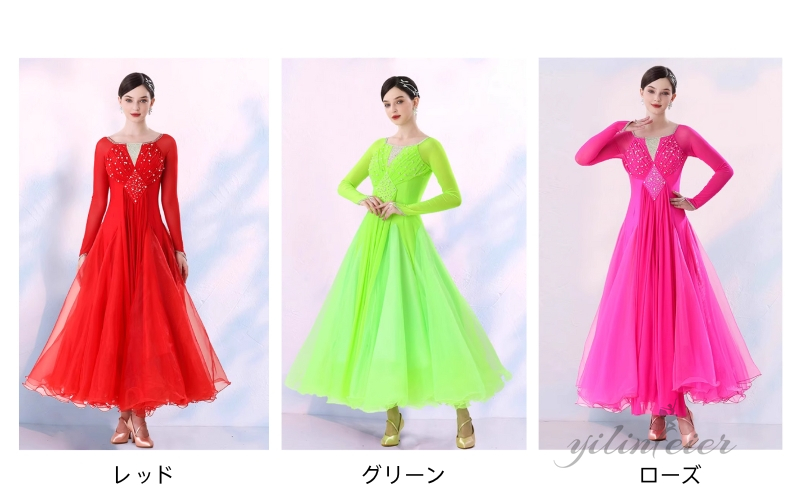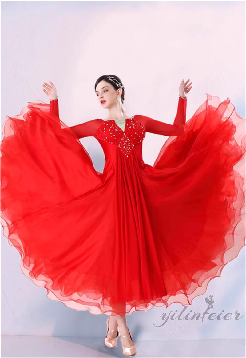 社交ダンス レディース ダンスドレス 衣装 ワンピース モダンダンス衣装 社交ダンス衣装 広がる裾スタンダード レッスン着 社交ダンス練習着 競技着 演出用 高級感 踊りドレス 大人気