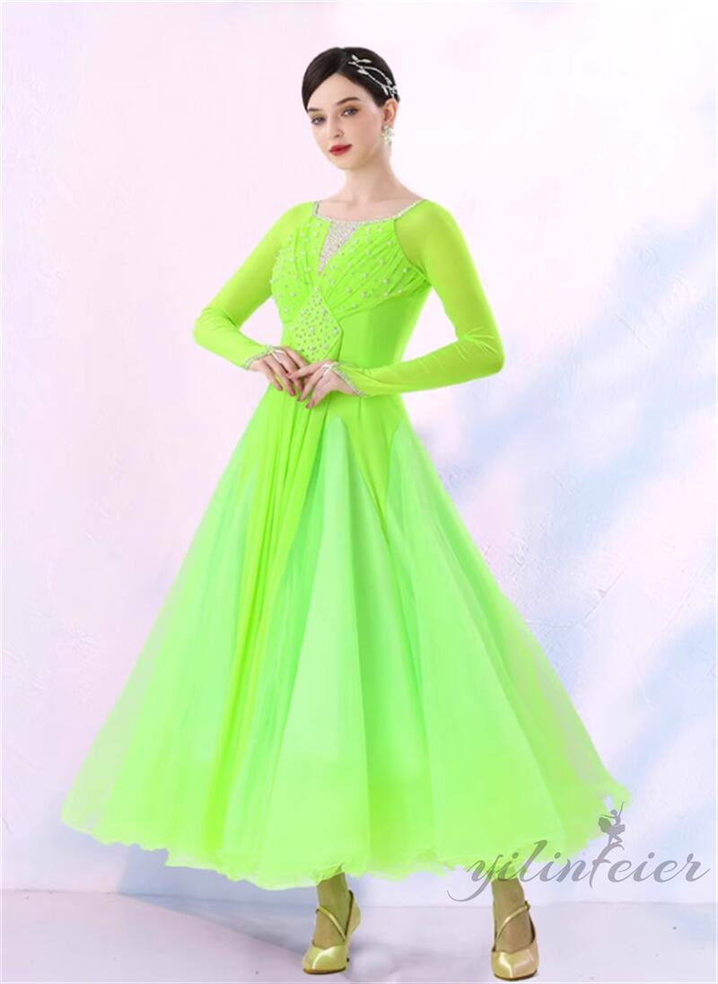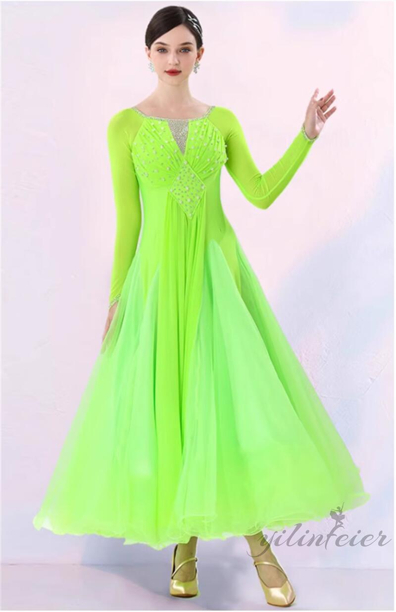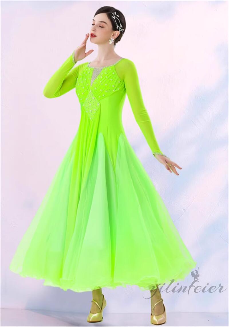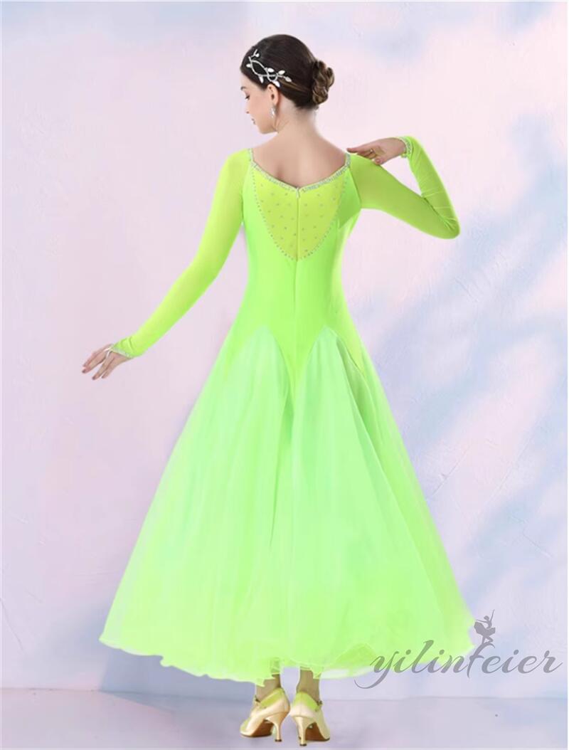 社交ダンス レディース ダンスドレス 衣装 ワンピース モダンダンス衣装 社交ダンス衣装 広がる裾スタンダード レッスン着 社交ダンス練習着 競技着 演出用 高級感 踊りドレス 大人気