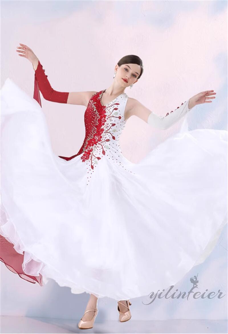社交ダンス レディース ダンスドレス 衣装 モダンダンス衣装 ワンピース モダンダンス衣装 社交ダンス衣装 広がる裾スタンダード レッスン着 競技着 演出用 高級感 踊りドレス 大人気