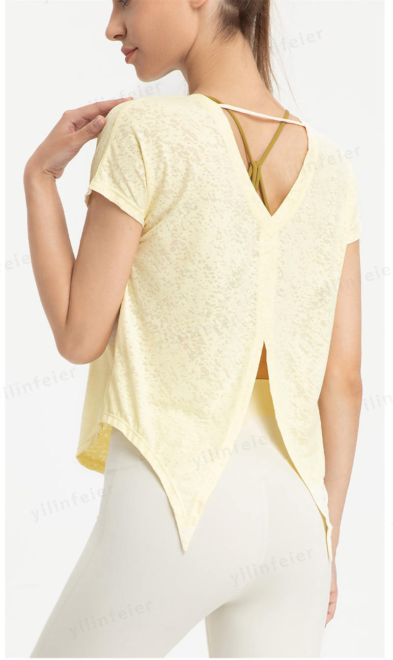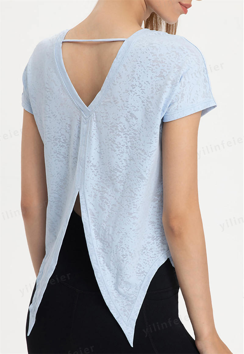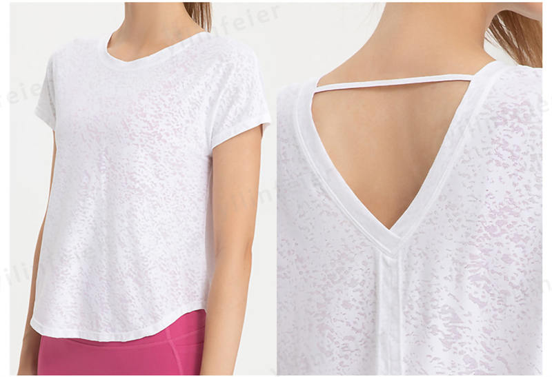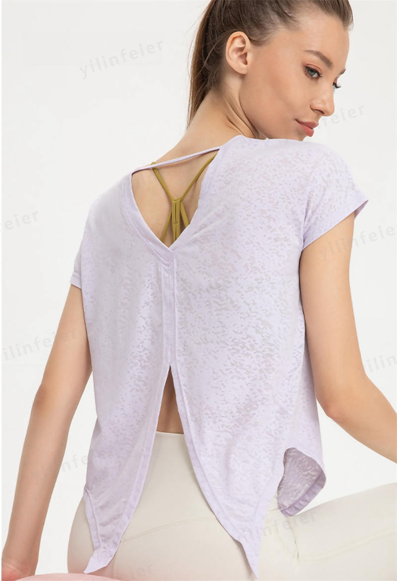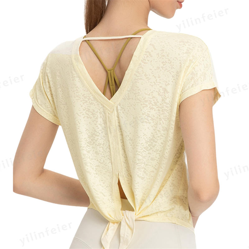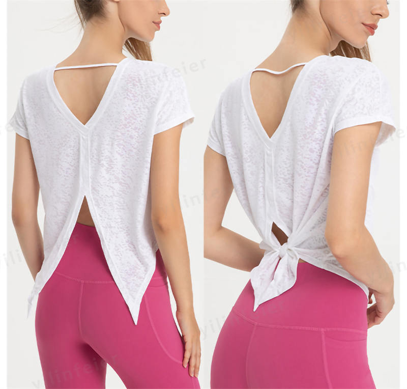 お尻をカバーしつつ背中が見えてセクシーかつ、トレーニングに適しています。ヨガの時はウエストを結び、エアロビクスの時は垂らして、動きに合った可愛いスタイルで使用しています