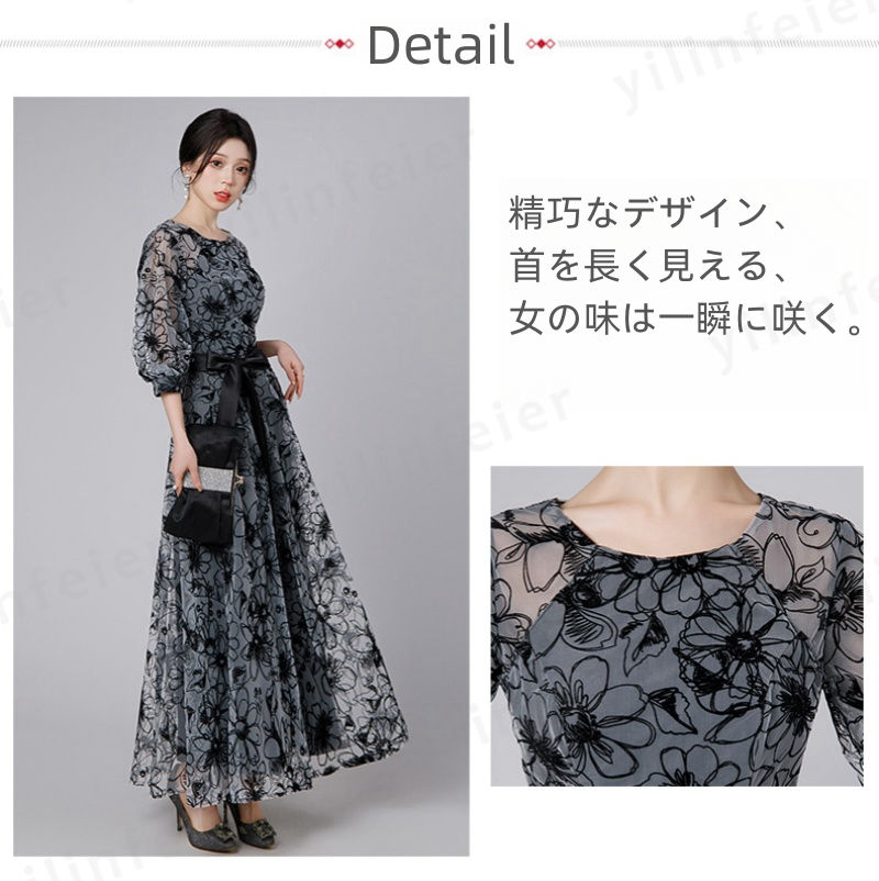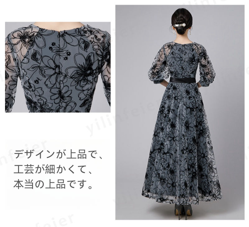パーティードレス ブラック 結婚式 ワンピース フォーマル 上品で落ち着きのあるフレアーワンピースドレス 披露宴 呼ばれ 同窓会 発表会 謝恩会 卒業式 入学式 パーティー 女子会 Party