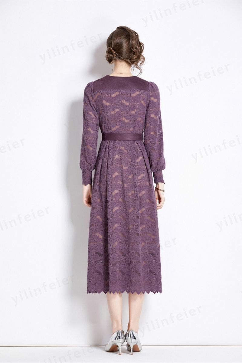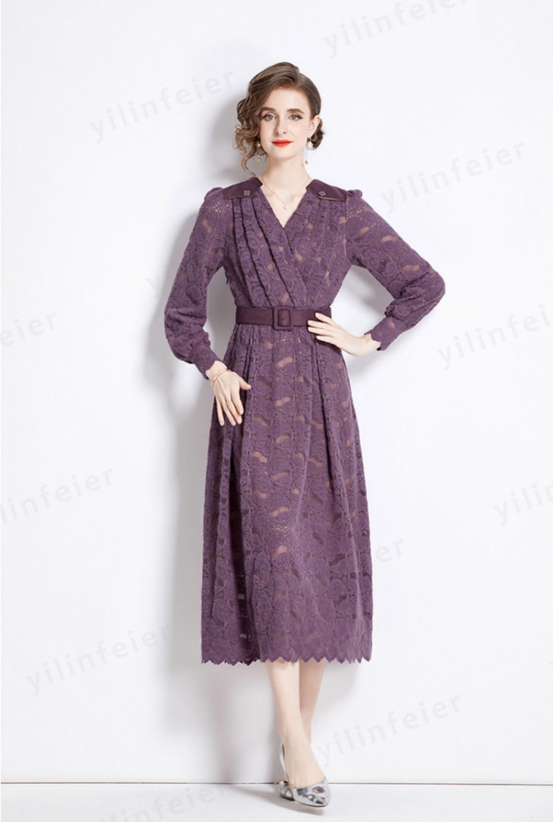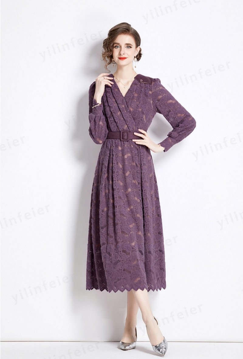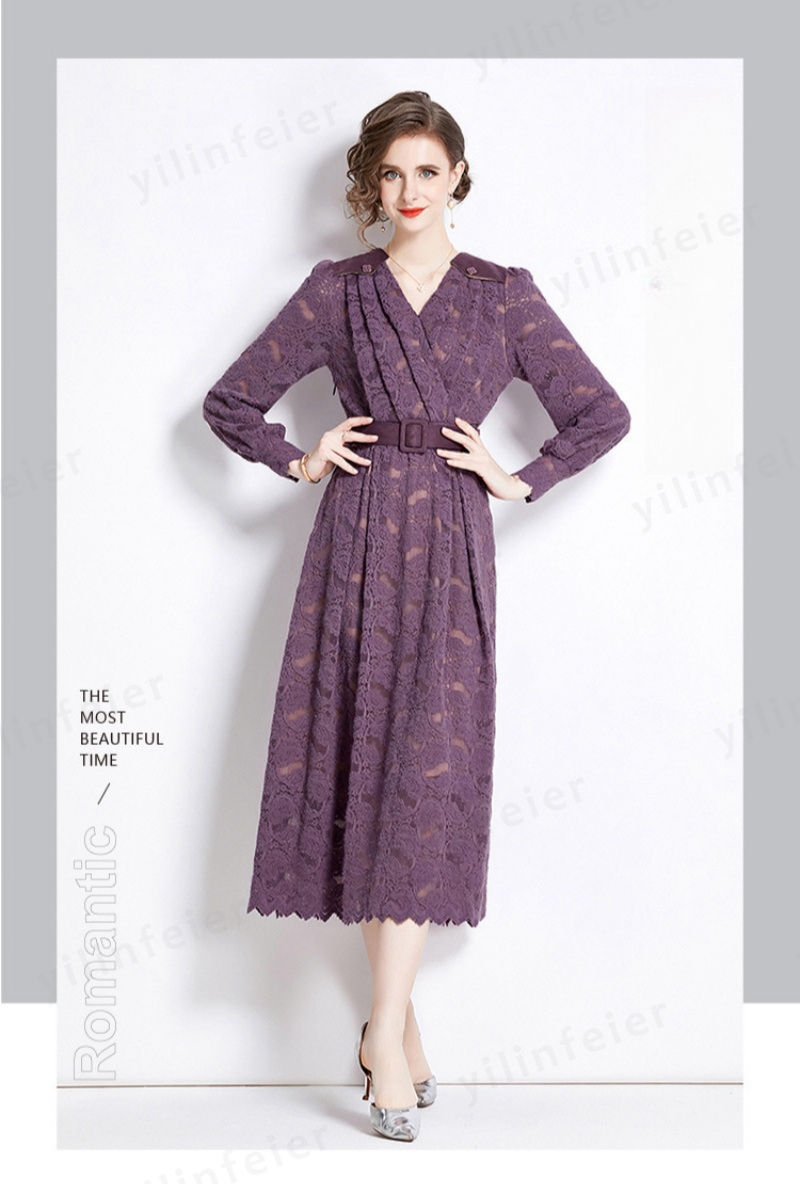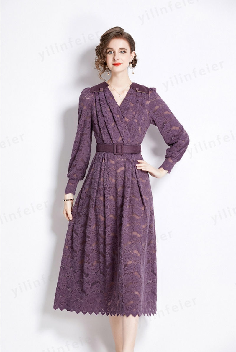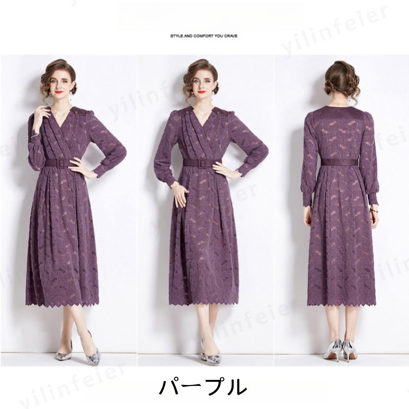 ベルト付き ワンピース 上品で落ち着きのあるフレアーワンピースドレス パーティードレス 長袖 ワンピース ブライズメイド ドレス 結婚式ドレス 演奏会 ドレス きれいめ 楽チン ゆったり