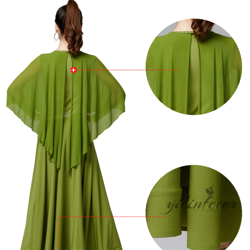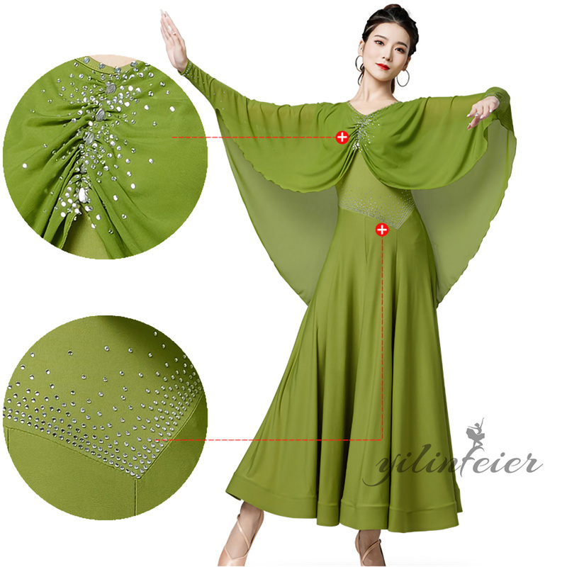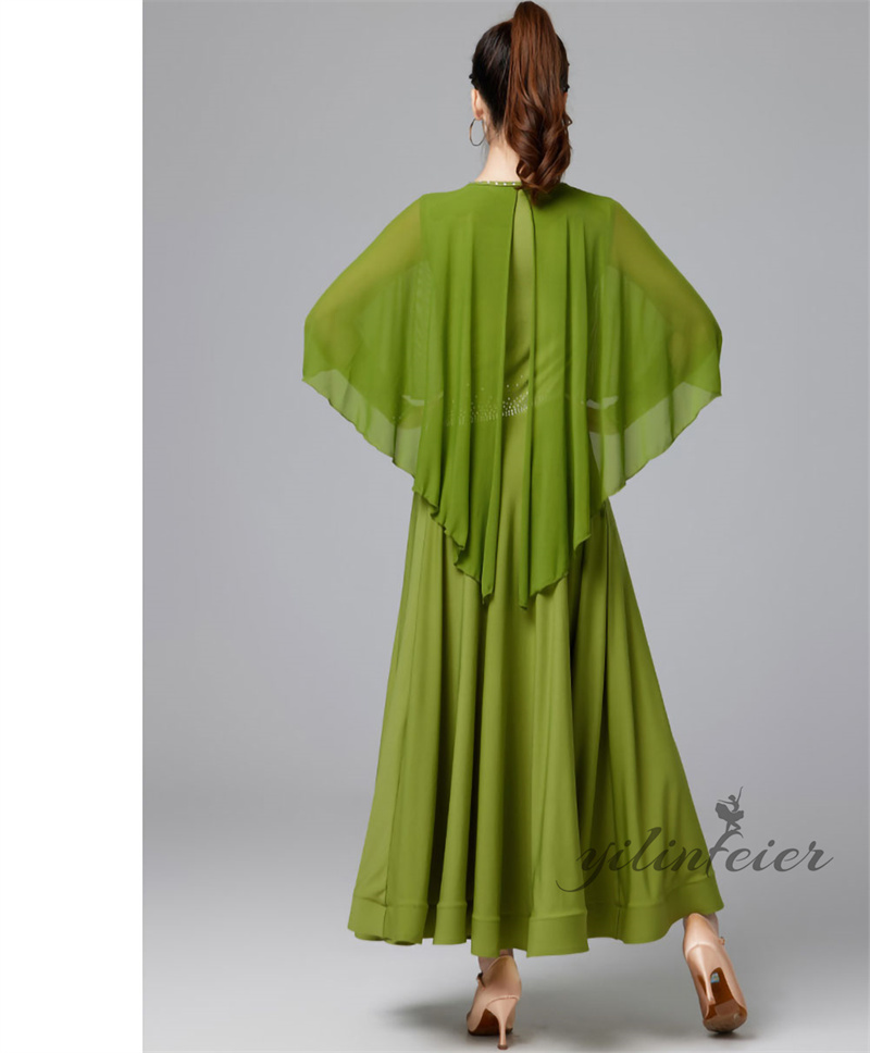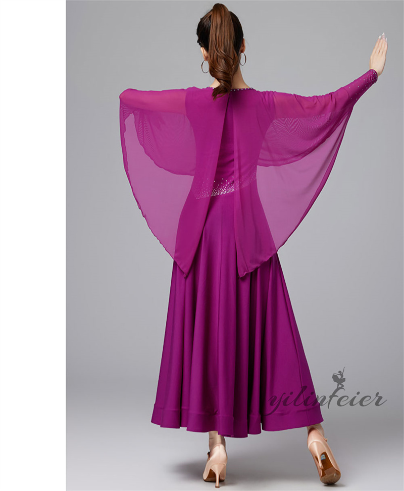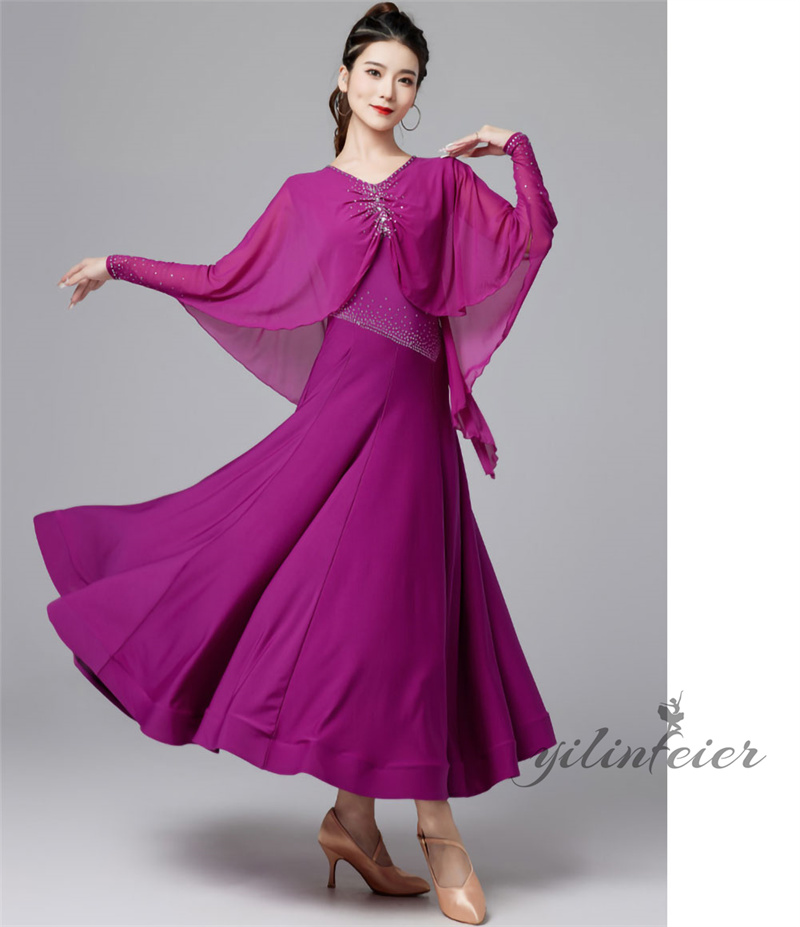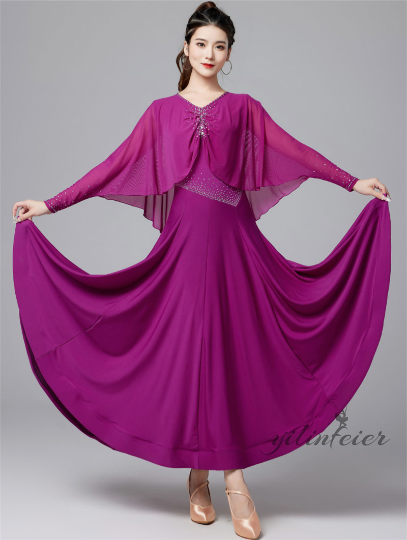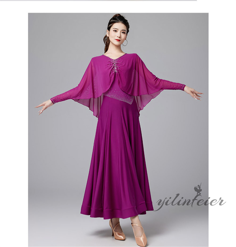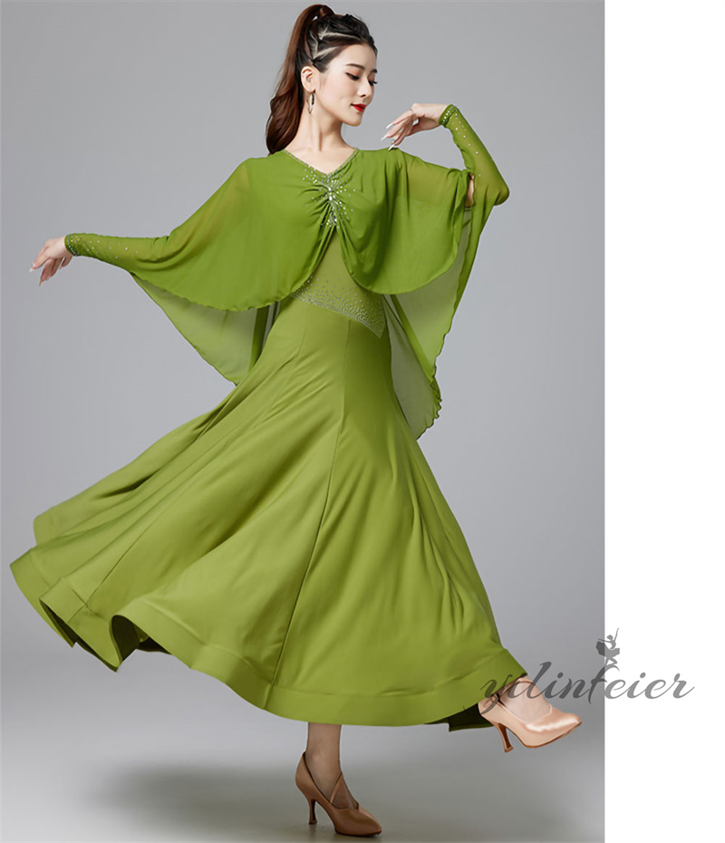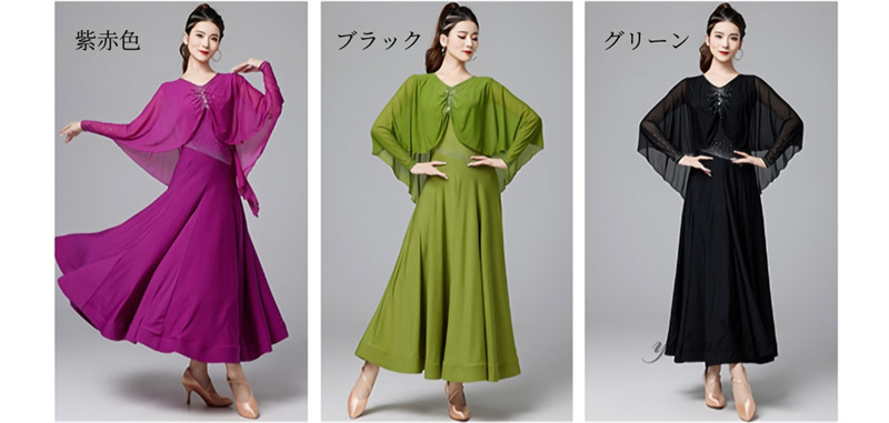社交ダンス レディース ダンスドレス 衣装 ワンピース レースフリル袖 モダンダンス衣装 社交ダンス衣装 広がる裾スタンダード レッスン着 競技着 演出用 高級感 踊りドレス 大人気