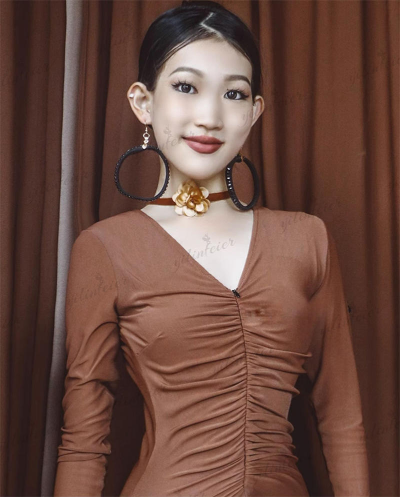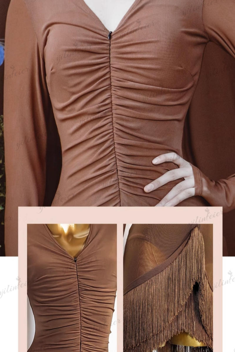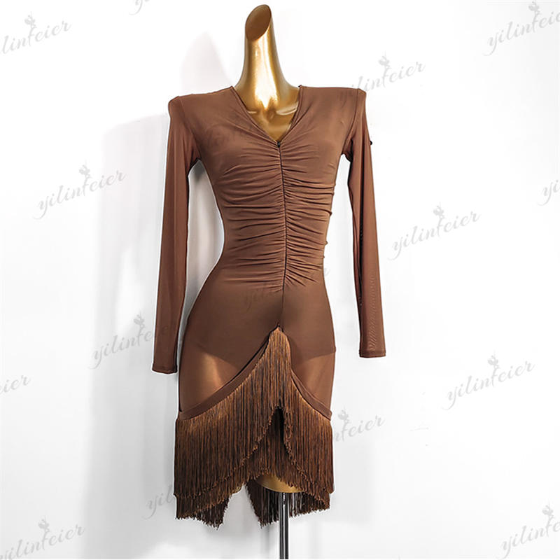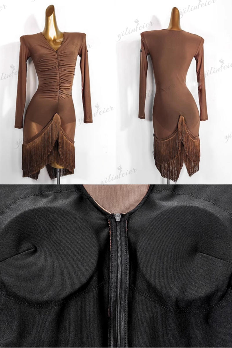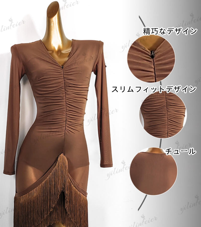 フリンジ裾 ジッパーVネック ラテンダンス 痩せラテン衣装 発表会用ドレス ワルツ ラテン系 ダンスドレス ワルツ用 発表会用 イベント テン専用ドレス レッスン着 練習用 ラテンドレス