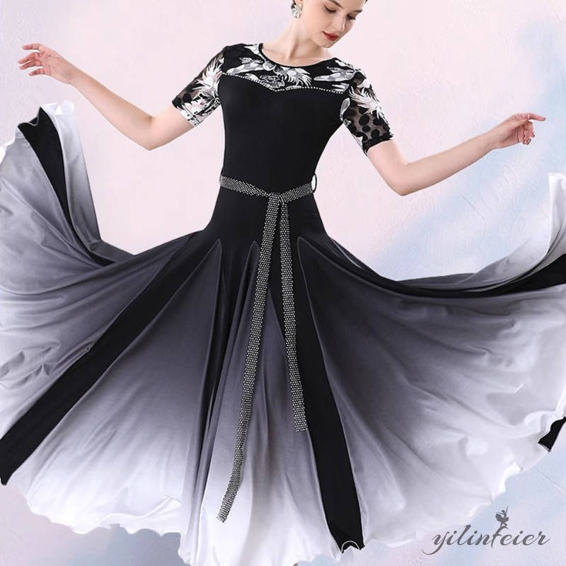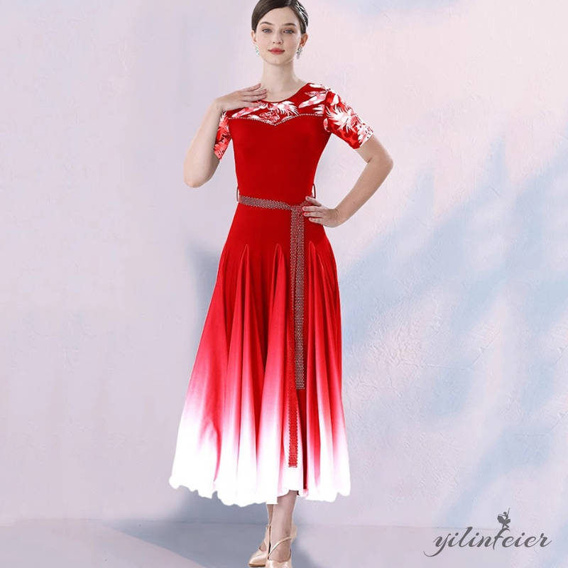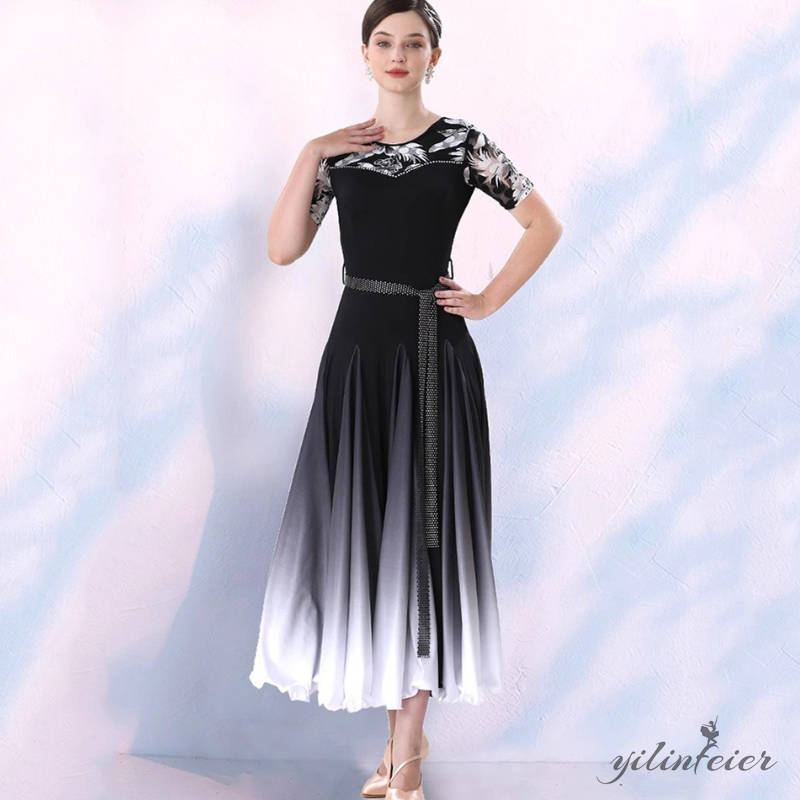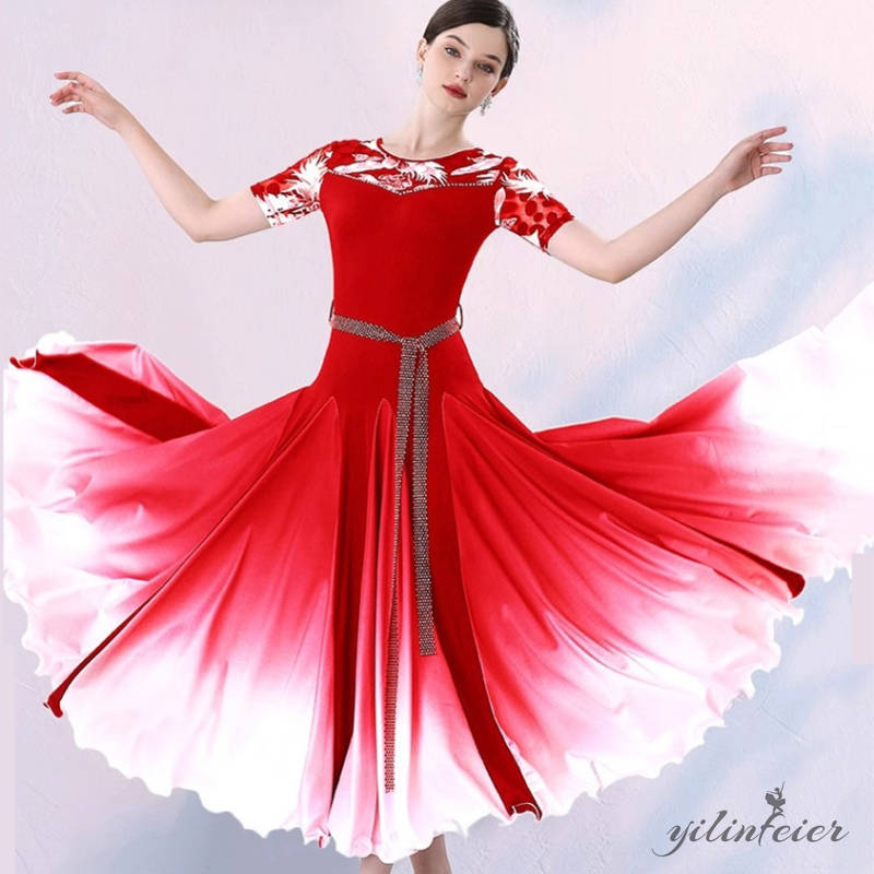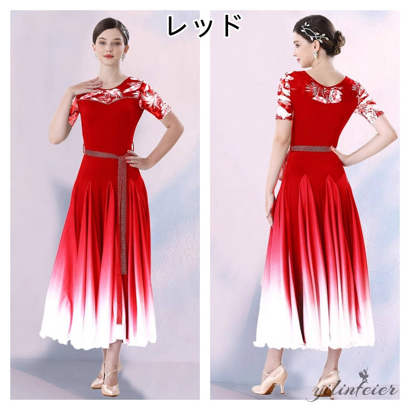 社交ダンス レディース ダンスドレス 衣装 ワルツ ワンピース モダン ドレス 社交ダンス衣装 広がる裾 スタンダード レッスン着 グラデーションのカラーデザイン、よりエレガントで優雅